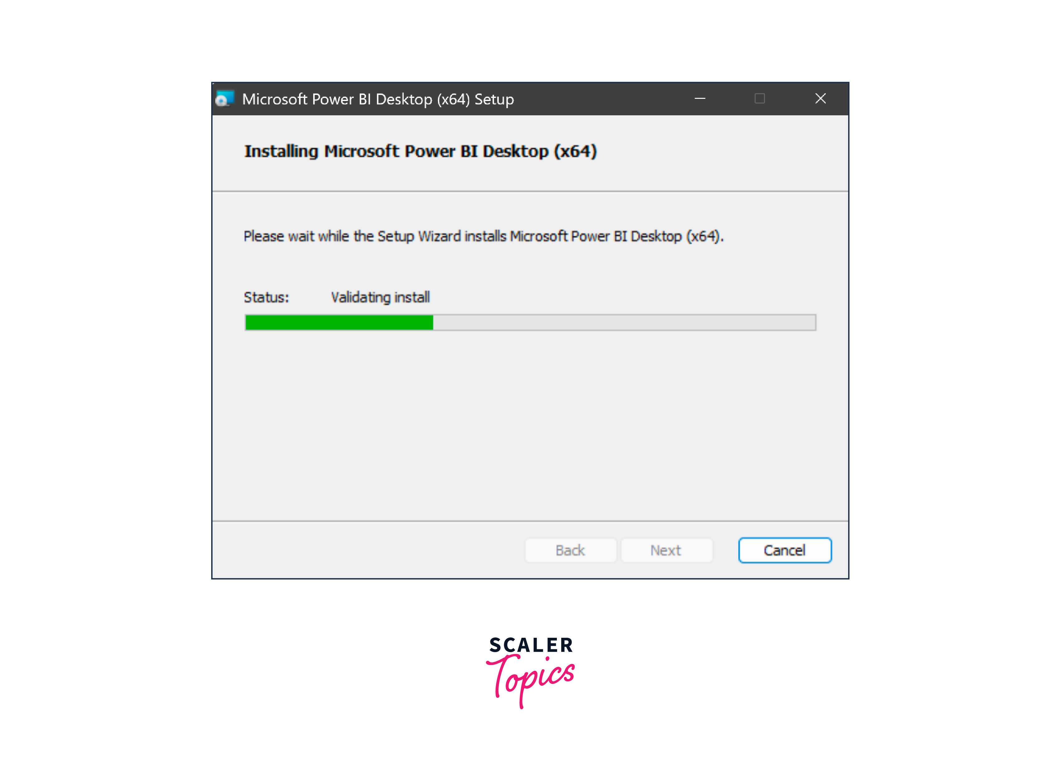 Step 9 - Once clicked on the Install button, the installer will begin the installation process, which may take a few minutes. During this time, the installer will extract files, install the necessary components, and configure Power BI Desktop on your system.