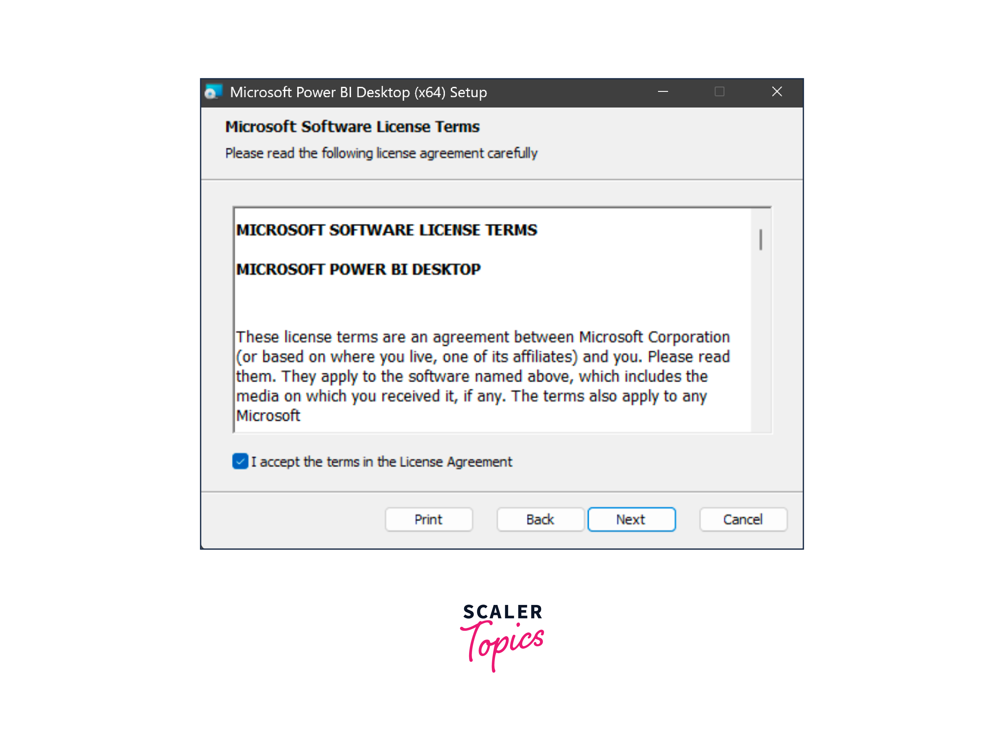 Step 6 - After clicking the Next button, the license agreement dialog box will be displayed. Once you tick to accept the terms in the license agreement, the Next button will get enabled to continue the installation process.