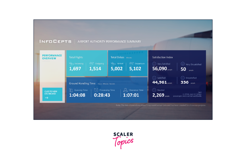 The Airport Authority Data Analysis project is all about understanding important airport information. This includes the total flights (coming and going), delays (arrivals and departures), time for ground operations, and even passenger feedback. All these details can be shown on a dashboard's main page. This project's purpose is to help airport managers make quick decisions based on data, especially during flight changes, emergencies, or delays.
