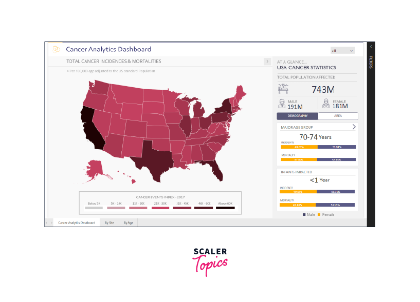 The Cancer Analytics report provides both a concise overview and an in-depth analysis of cancer patients in the United States. Through this report, you can examine the mortality rates associated with various types of cancer, categorized based on multiple factors. By utilizing the Cancer Analytics Dashboard, you can make informed decisions regarding the increasing number of cancer patients in the country.