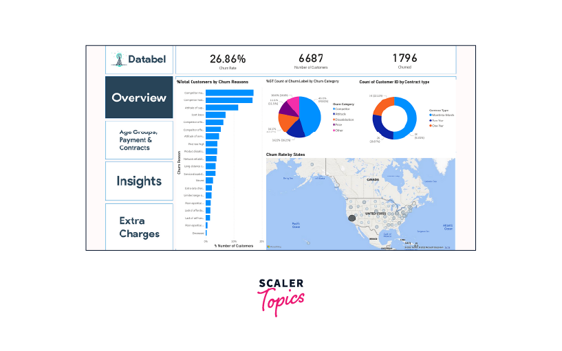 The Customer Churn Analysis project is a simple and popular example that helps you learn how to use Power BI. This project focuses on studying customer behavior, specifically when they churn, that is, stop using a service or buying a product. By looking at the sales and profits of products in different regions, you can understand which areas are doing well and distribute profits effectively. The goal is to determine how to keep customers engaged and prevent them from leaving. To do this, you'll create different types of visual displays, like charts and graphs, that show how sales change over time and how different products perform.