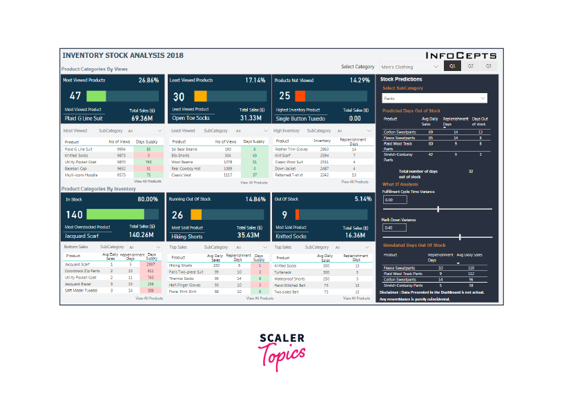 This report delves into inventory stock analysis, offering insights into stock inventory trends for the year 2018. With this interactive dashboard, you can make predictions about the "Availability of Stock" and "Time to Replenish Stock." These predictions are based on data from the fulfillment cycle and markdown variance, providing valuable insights for inventory management.