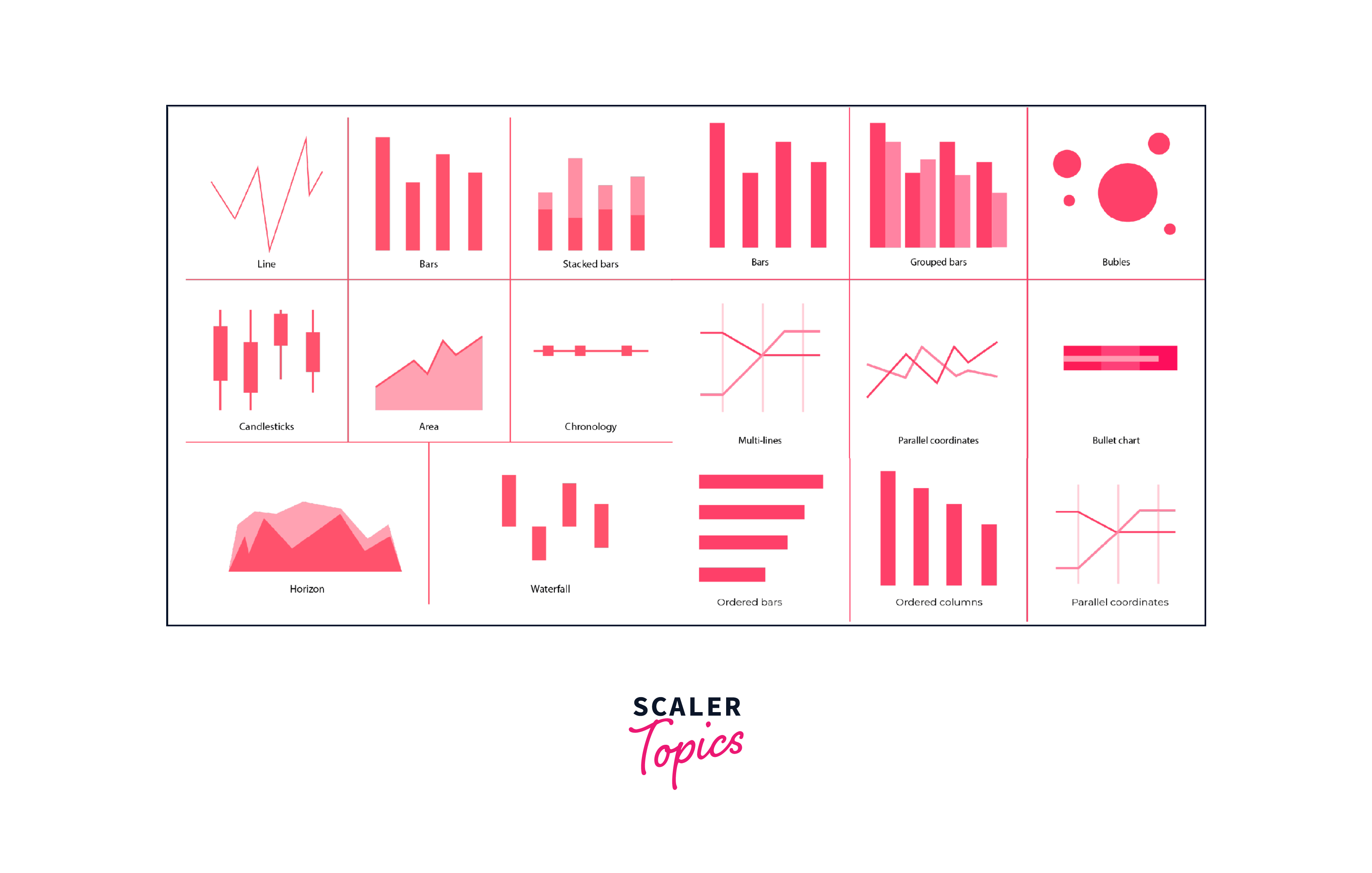- Bubble Chart - Extends the scatter plot by adding a third data dimension, displayed as varying bubble sizes.