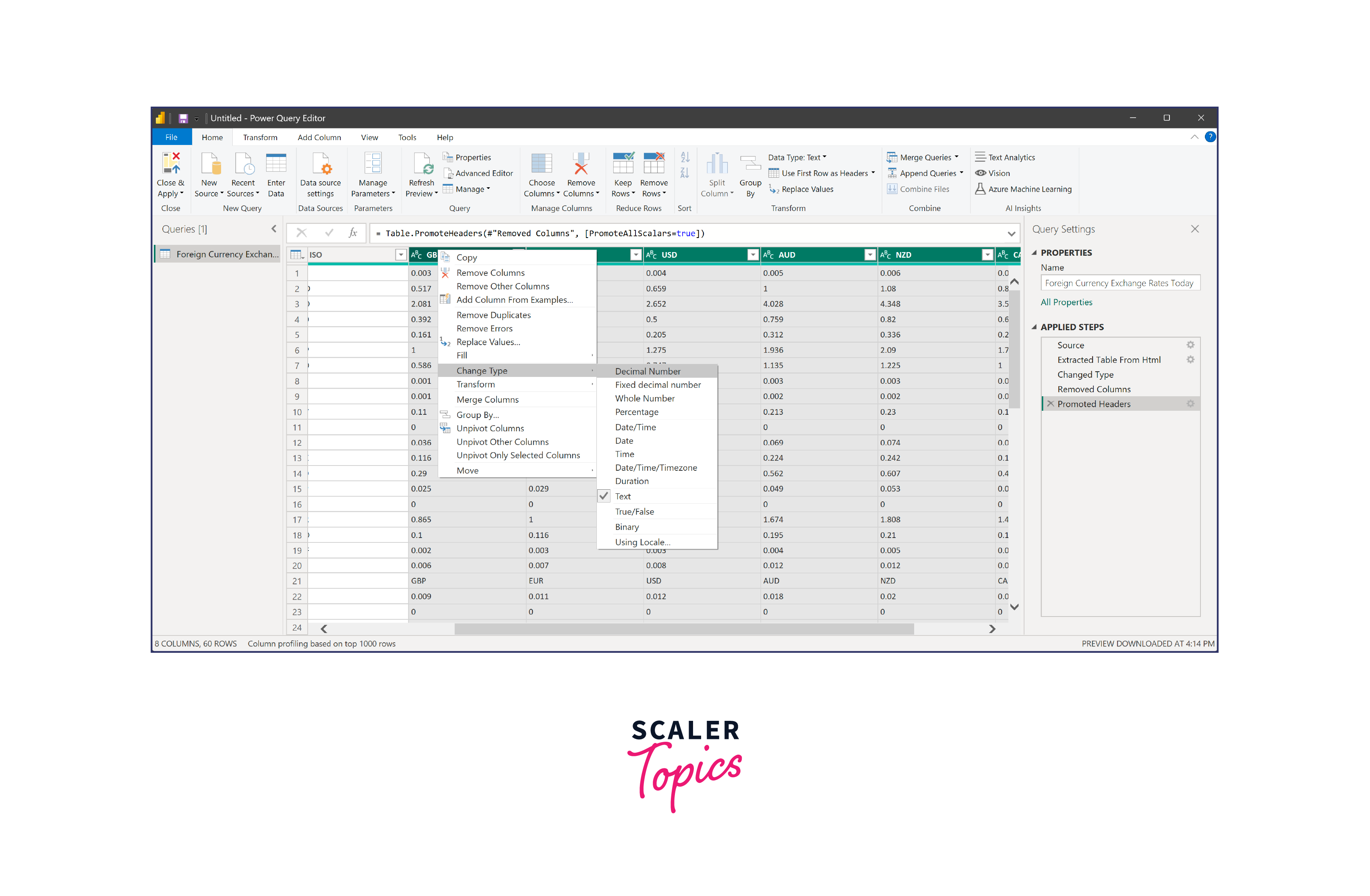We need to ensure the conversion rate columns have numeric values, as they are currently in text format. To change the data type of a column in Power BI, you can follow the below steps -