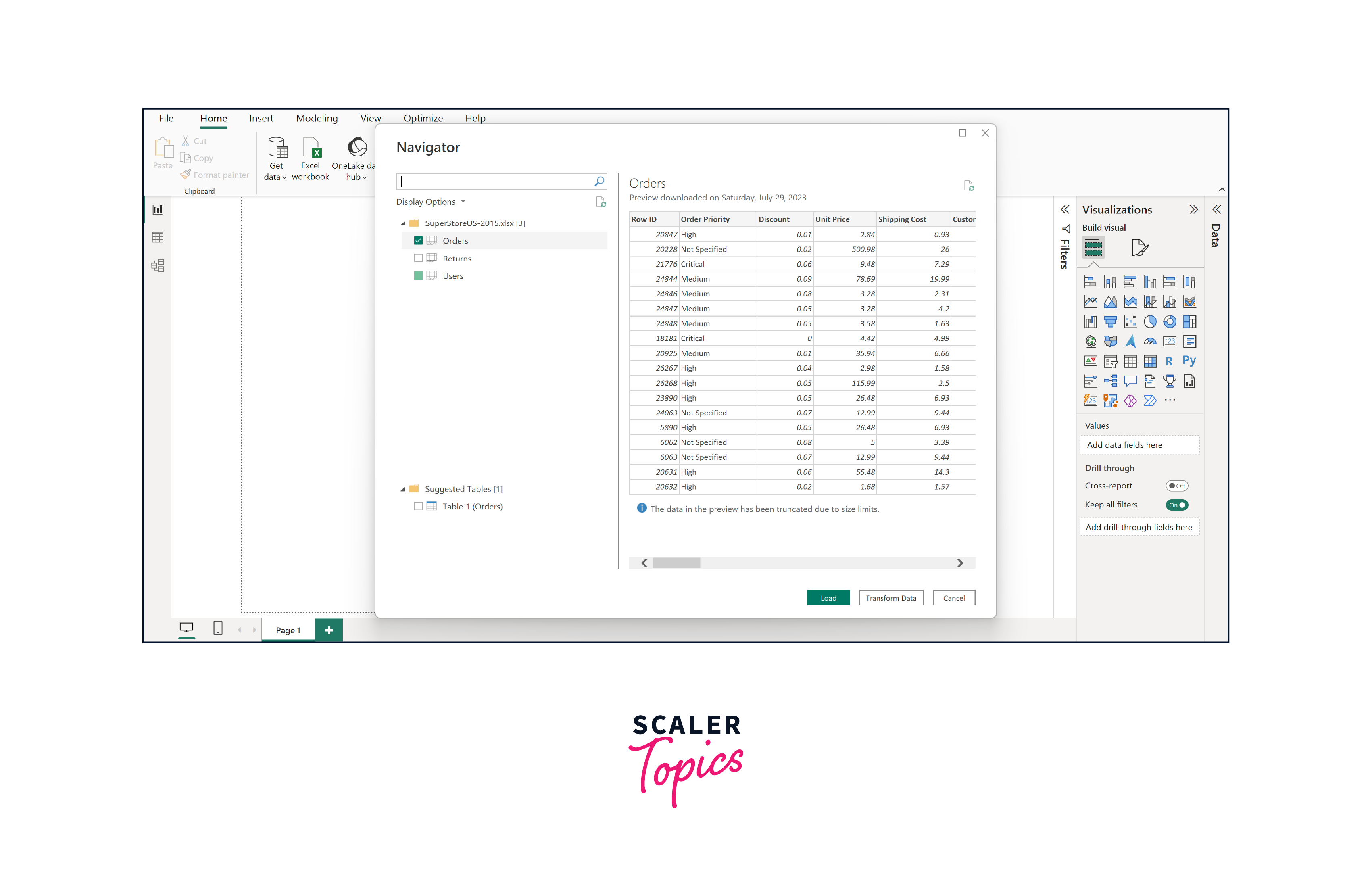 - Click "Load" to import the data into Power BI.