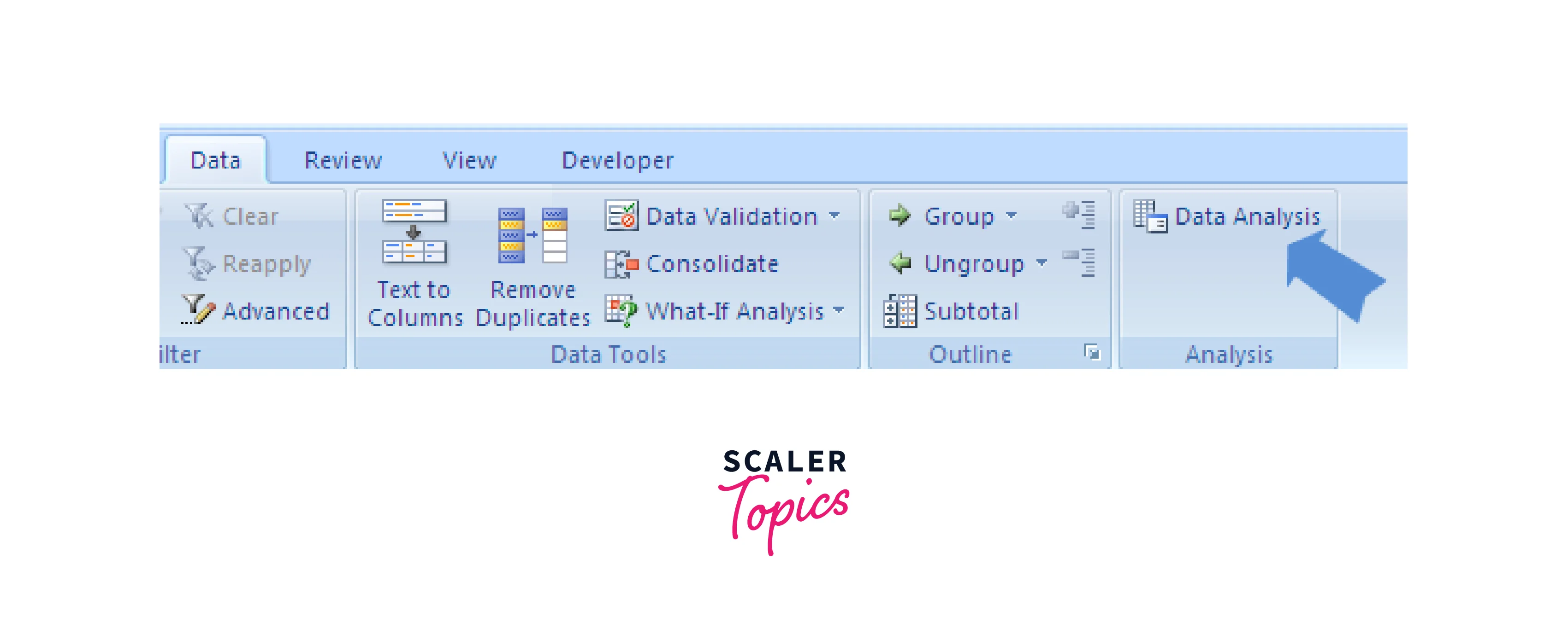 The following action is to confirm that the free Data Analysis ToolPak program is set up on your PC. This program offers essential resources for doing regression analysis, one of several statistical calculations. First, open the Excel program, go to the "Data" tab in the top bar, and see whether the "Data Analysis" tab appears to determine if you already have the Data Analysis ToolPak. Click "Analysis tools" and "Data Analysis ToolPak" to install if it doesn't.