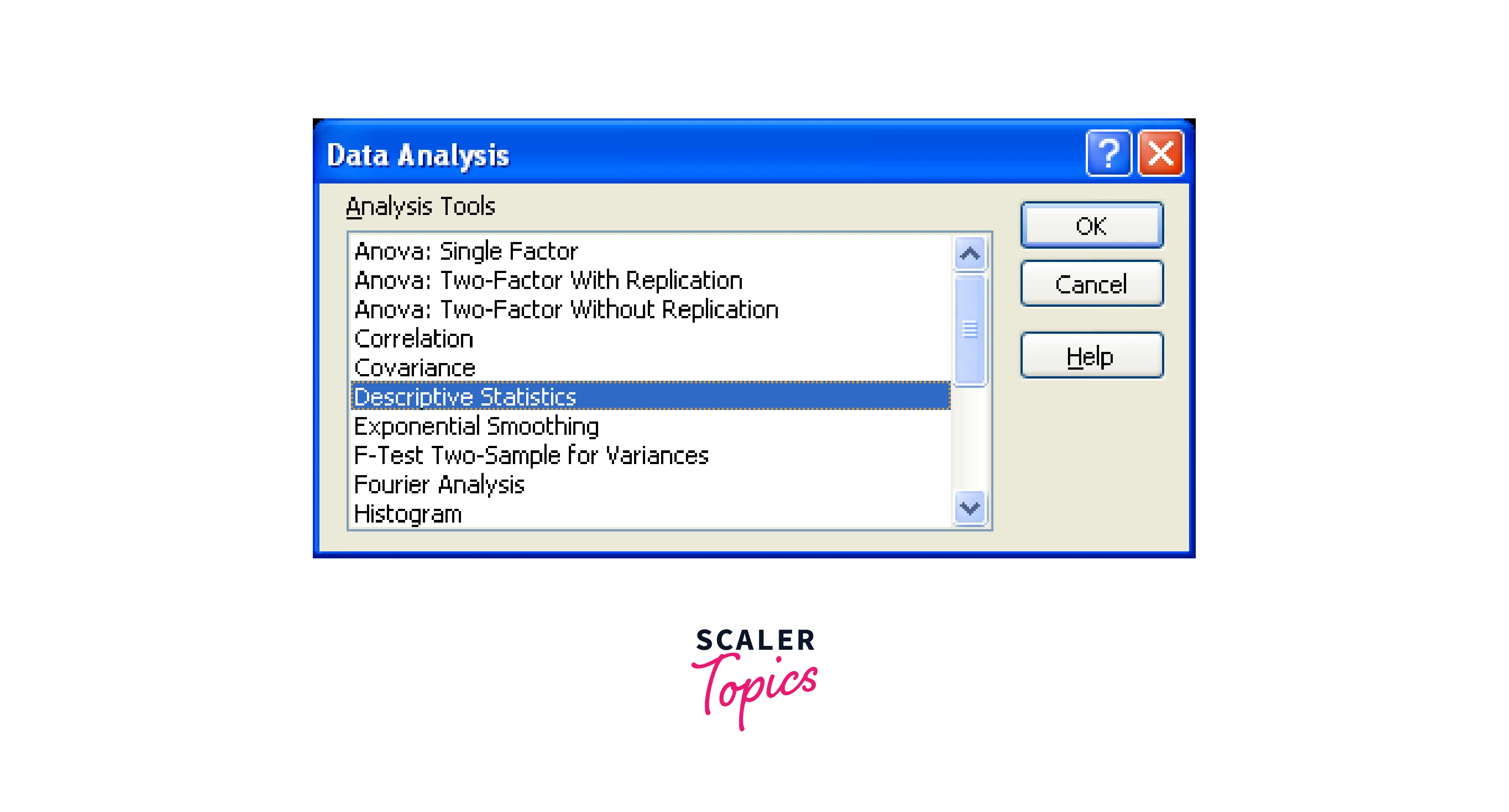 We choose the data in the input range, then the output range, where we want the output to be saved. The output will be thrown into the new worksheet if the output range is not specified. For options involving means, check summary statistics and confidence levels. The level of confidence is 95% by default. You can adjust the level to the study's hypothesis standard. The outcome will be displayed in the output range you choose when you click "Ok."