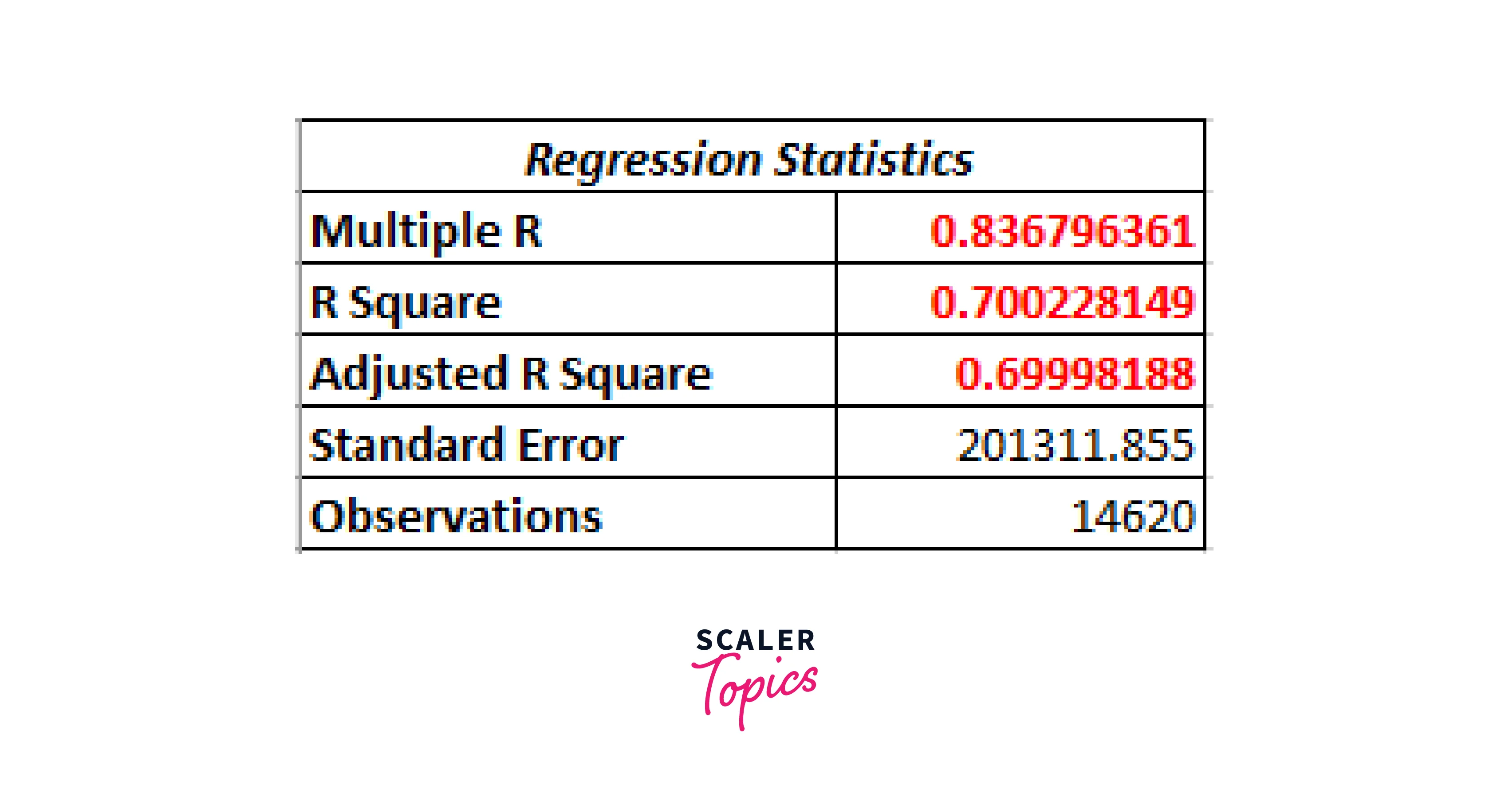 After conducting your regression analysis, interpreting your computations' outcomes is the next step. The summary output will produce several numbers, the R2 value being particularly insightful because it may gauge the variation between the dependent and independent variables and determine whether the regression model you selected is a good fit for your data. The range of R2 values is 0 to 1, with a greater value indicating a better fit for the model. A lower p-value indicates a correlation between the independent and dependent variables, which can be used to determine their relationship.