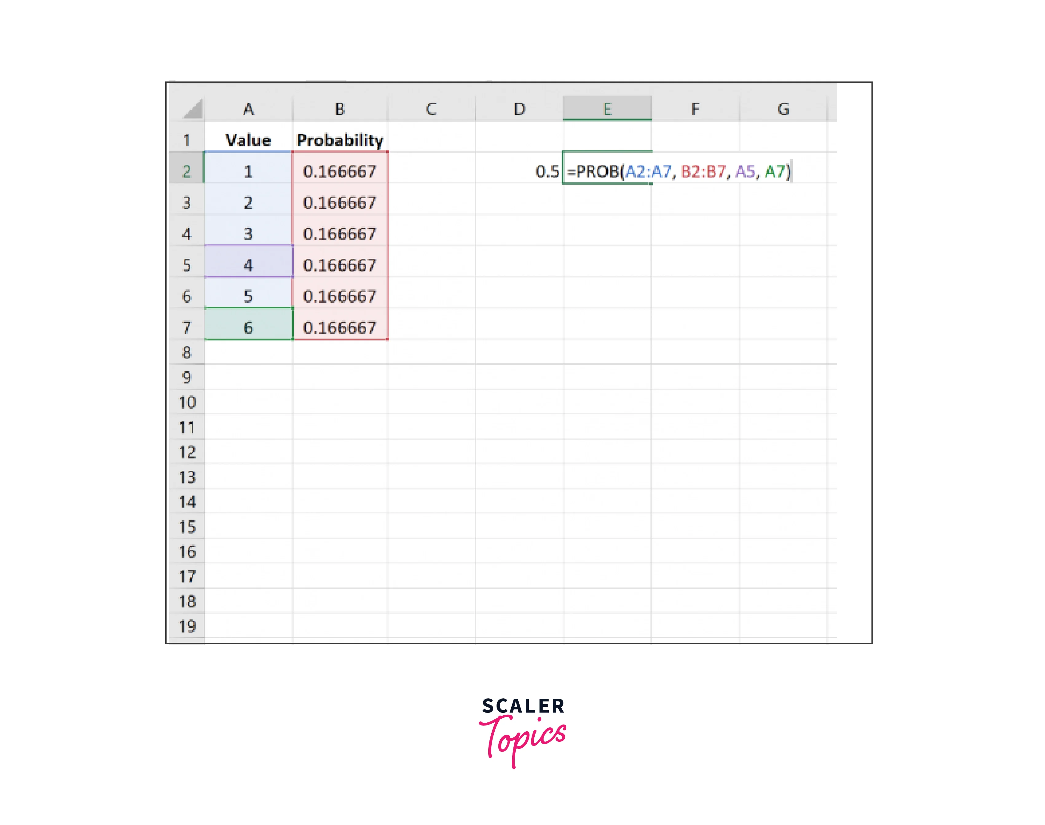 - For example, to calculate the probability of a specific outcome using the PROB function, use the formula: =PROB(range, probabilities, x).