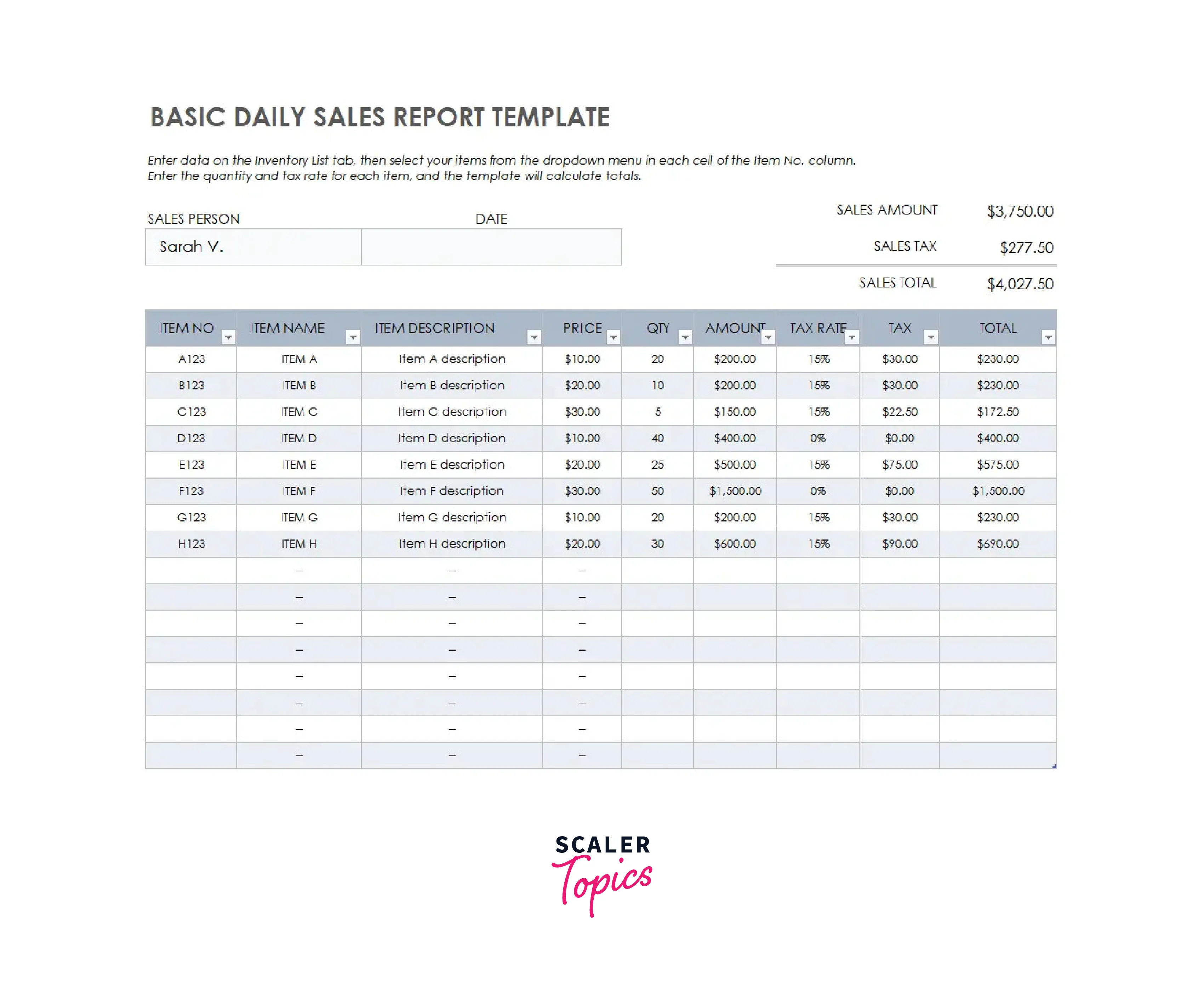- Open the sales record in Excel and locate the columns that contain the information you need. Typically, this will include columns for "Product Name," "Quantity Sold," "Total Sales," and possibly "Discount" or "Tax."