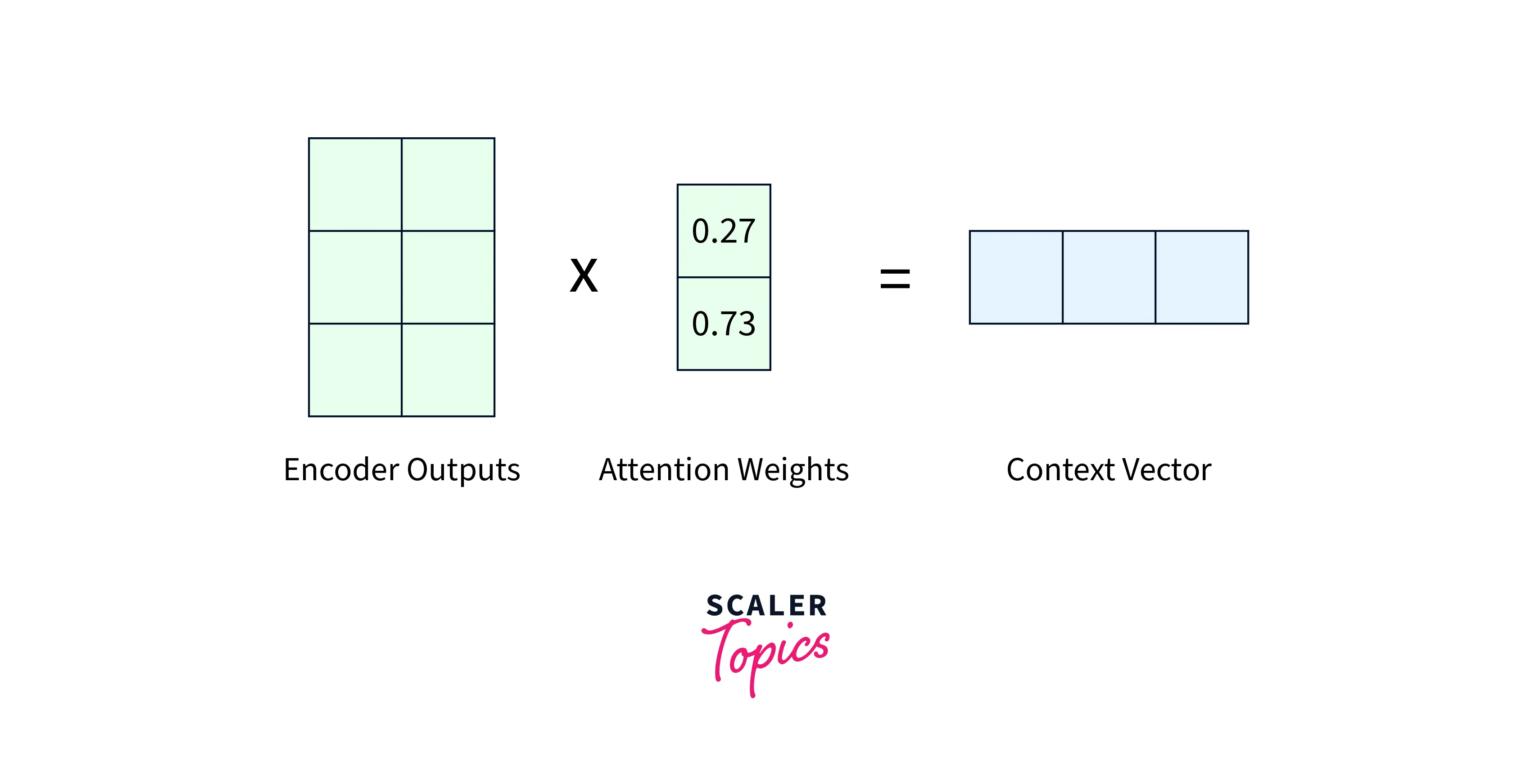 The context vector is calculated by multiplying the encoder hidden states and their respective alignment scores. -
