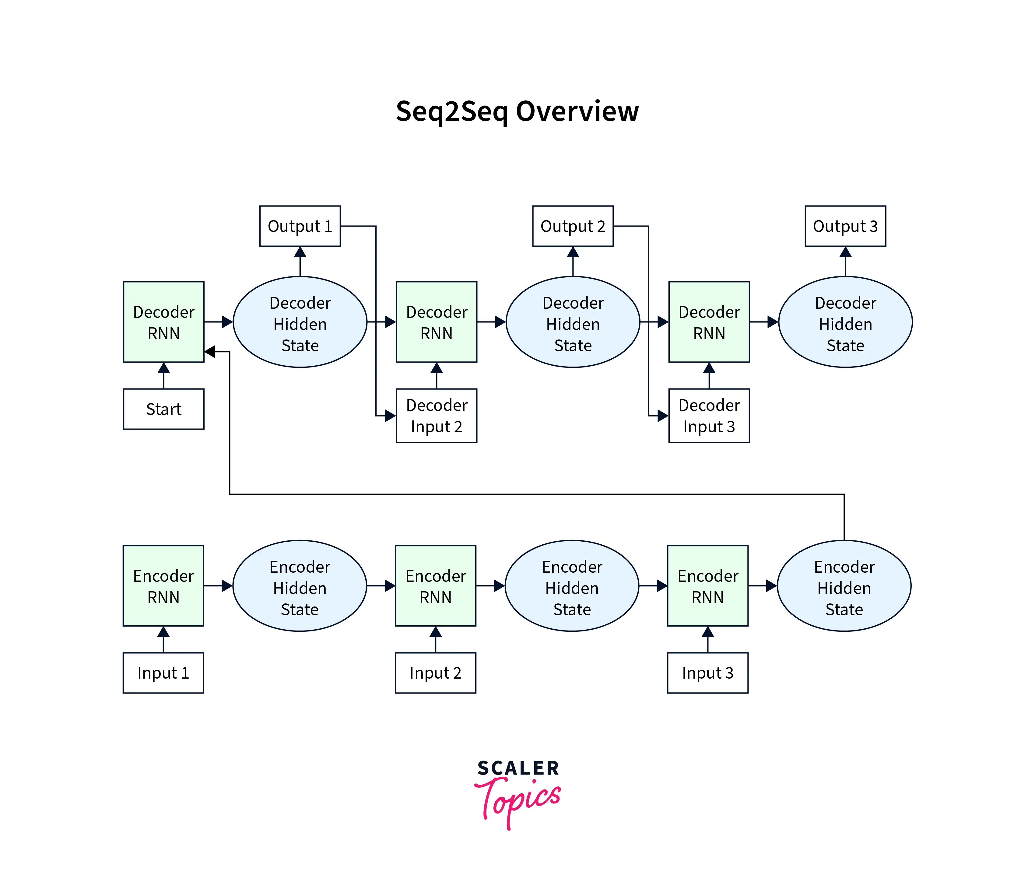 Let us elaborate more on the last point to see why that happens. The diagram below shows how RNNs can be used to construct an encoder-decoder structure for seq2seq modeling.