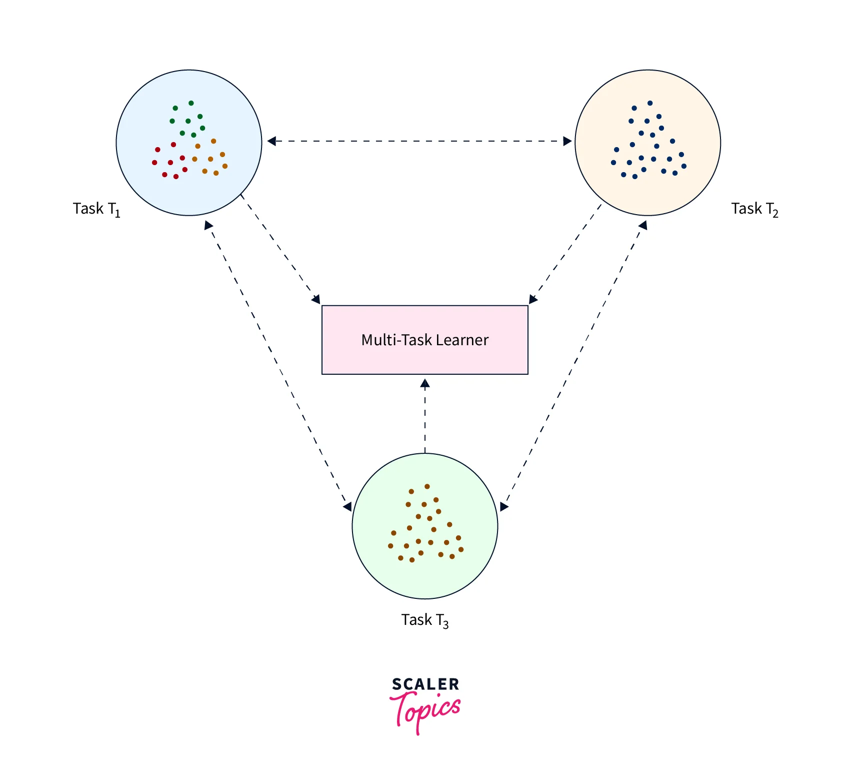 With Multitask learning, the training model learns patterns from more than one task at a time which causes it to learn features from all of them without any distinction between the source tsska dn and the target task. This slightly contrasts transfer learning, where the model is never subjected to the target task during the pre-training phase.