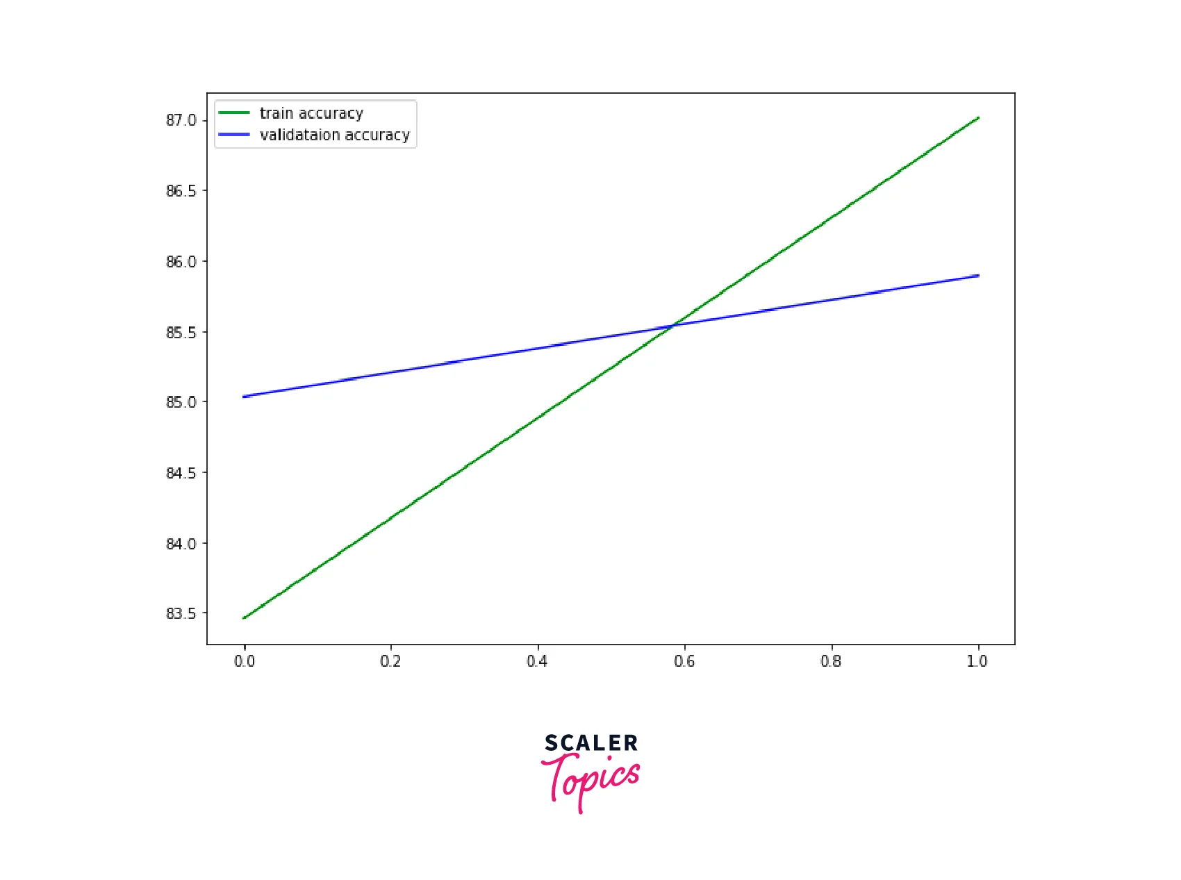 As can be seen, we started with a higher validation accuracy than the training set but over time, training accuracy outperforms the validation accuracy.