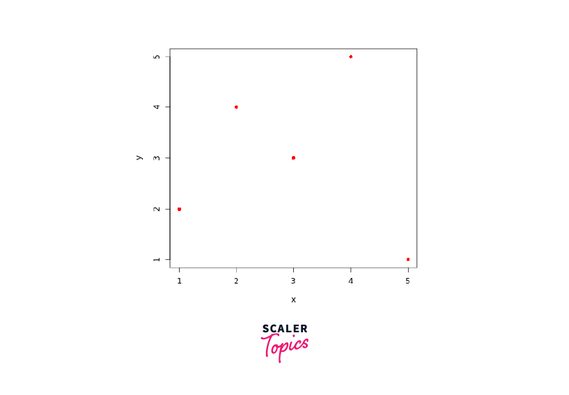 In this example, we use points() to plot the data points. By specifying col = rep(c("red", "blue"), length.out = length(x)), we assign alternating red and blue colors to the points in both datasets. The length. out argument ensures that the colors are repeated appropriately to match the length of the dataset.