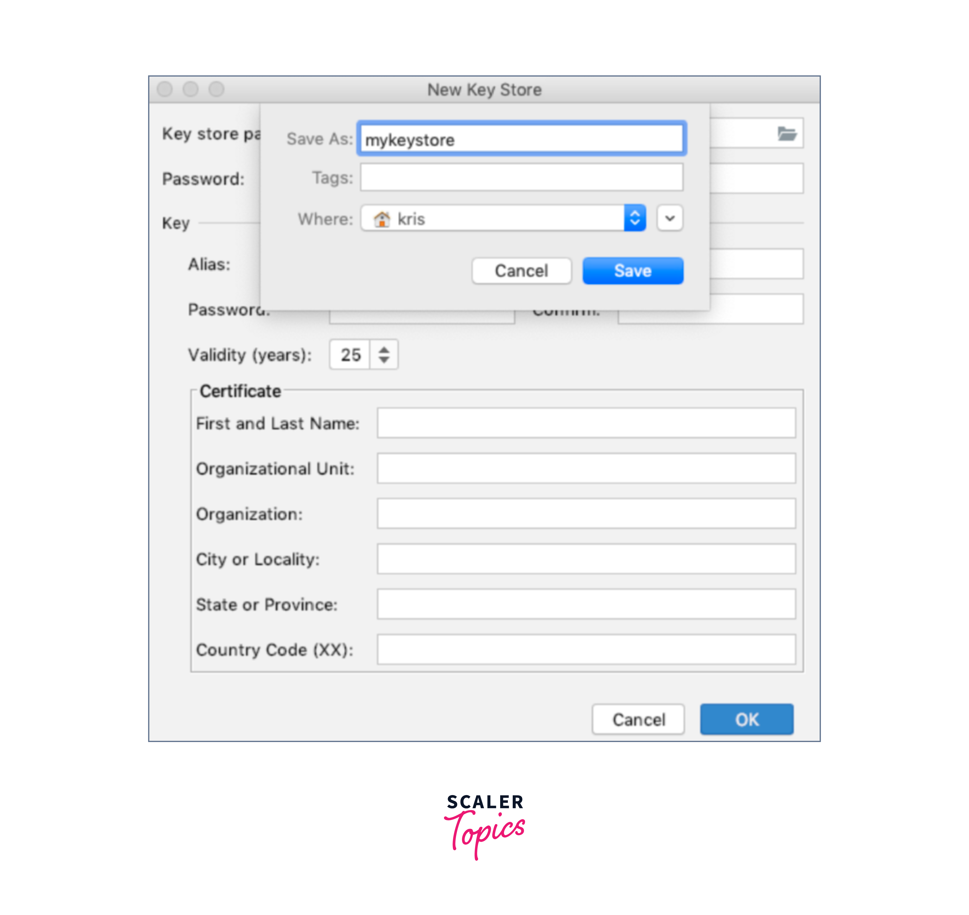 - The keystore file can be generated using the keytool utility provided by the Java Development Kit (JDK).