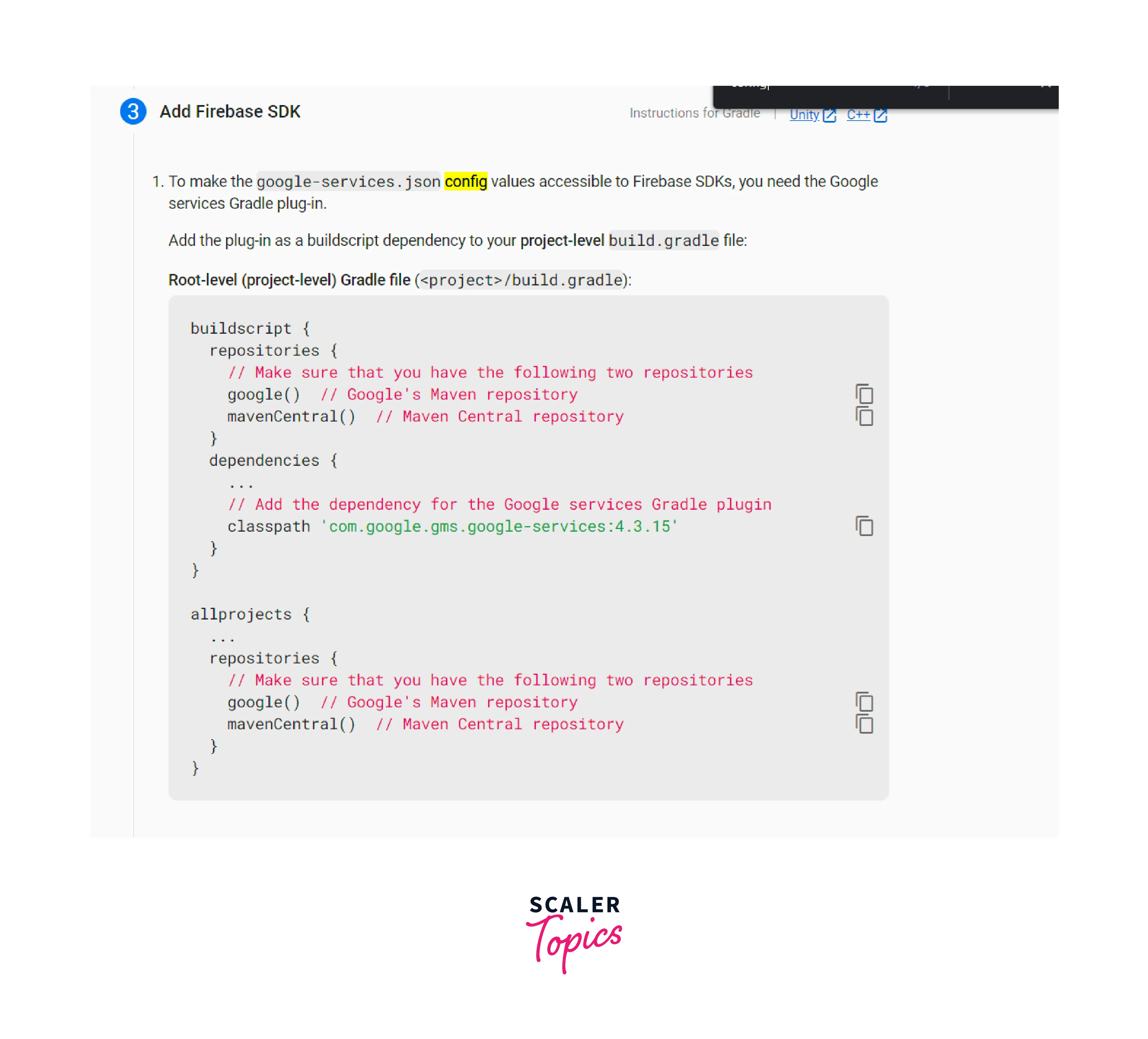 - To add Firebase to your app, choose the appropriate platform based on your selection.