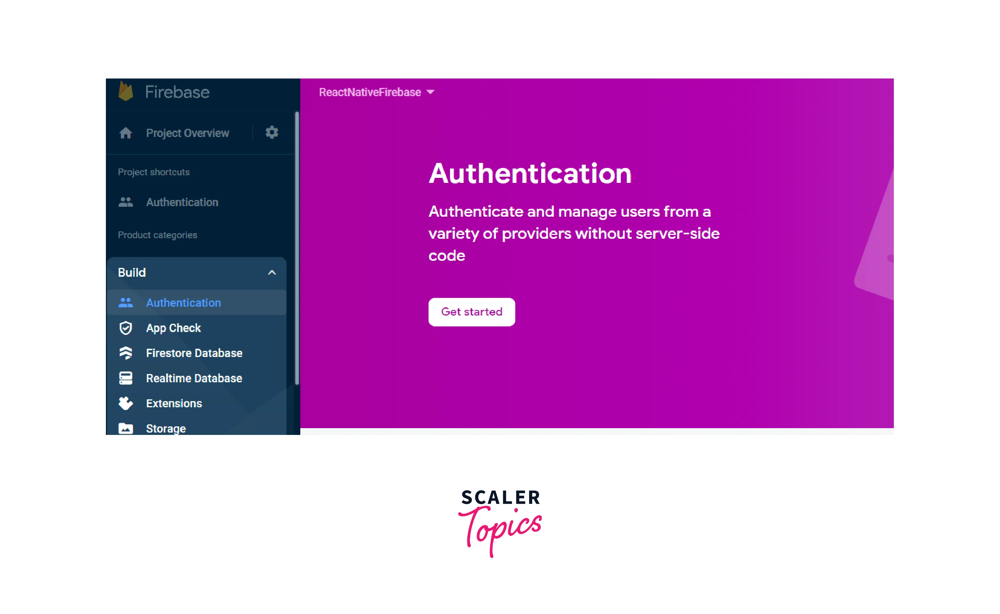 - On the left side of the Firebase dashboard, you'll find a comprehensive list of Firebase features. Navigate to the Authentication section, where the "Users" tab will display the list of registered users. We'll be using the front-end of React Native to register users.
