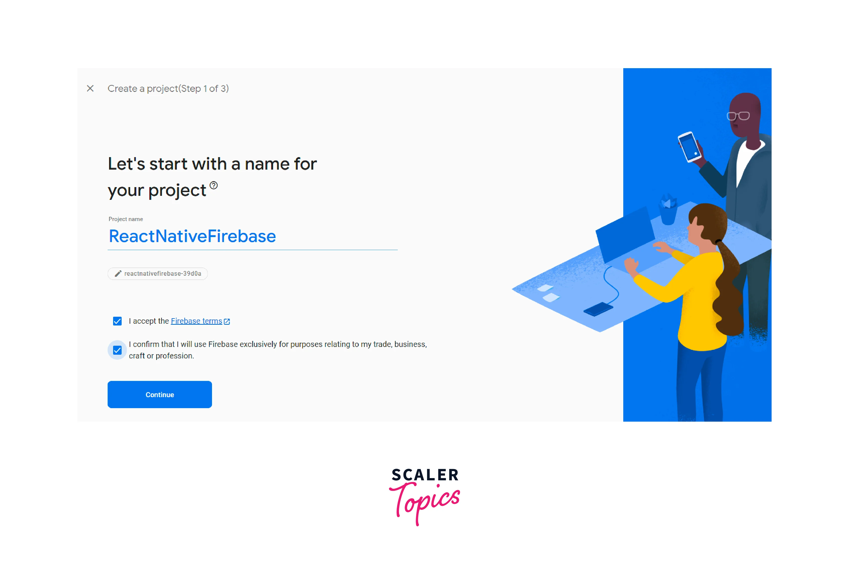 - Provide a suitable name for your project and proceed by clicking the "Continue" button.
