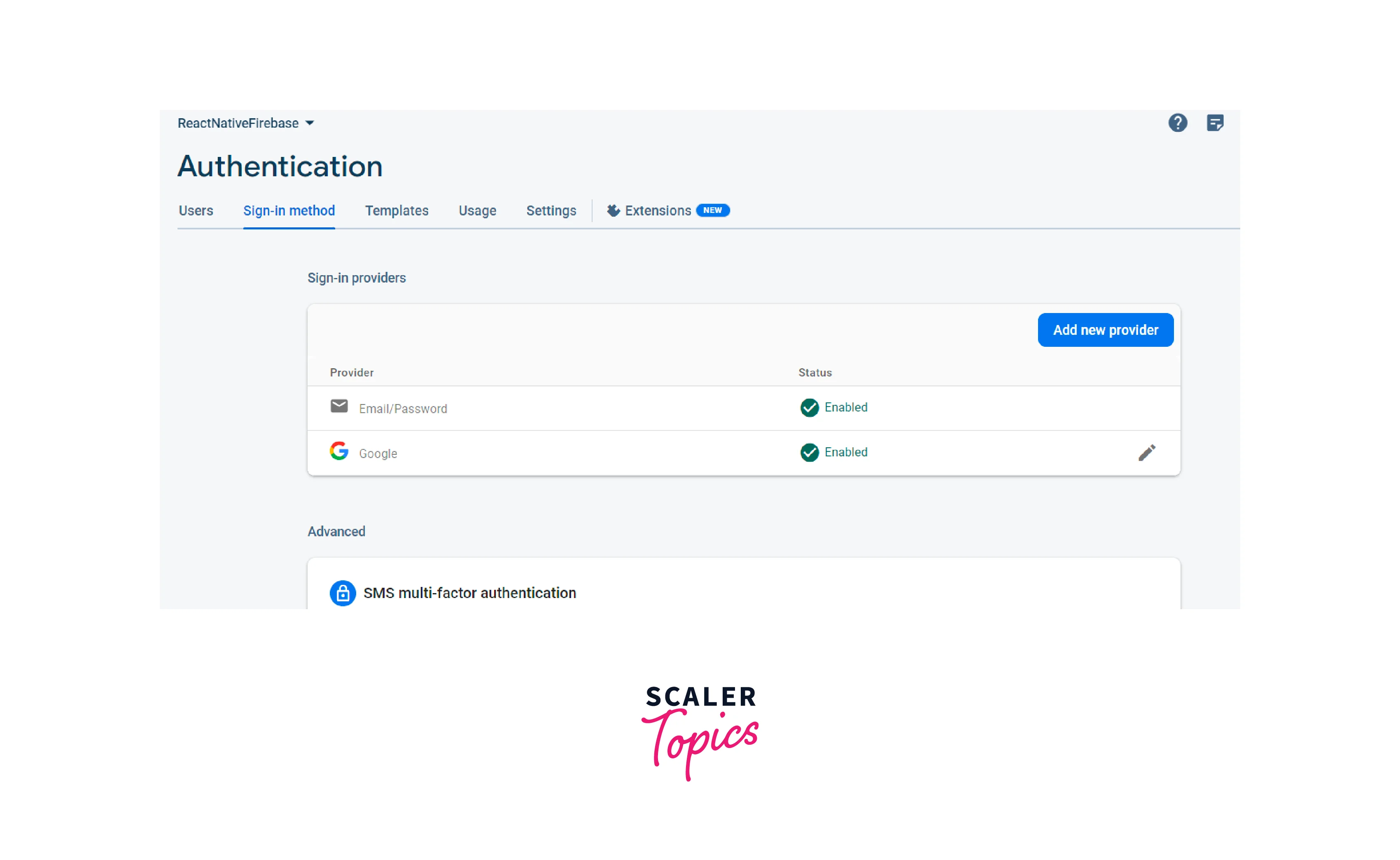 - Enable the sign-in methods, such as Email and Password, and also enable Login with Google for a seamless user experience.