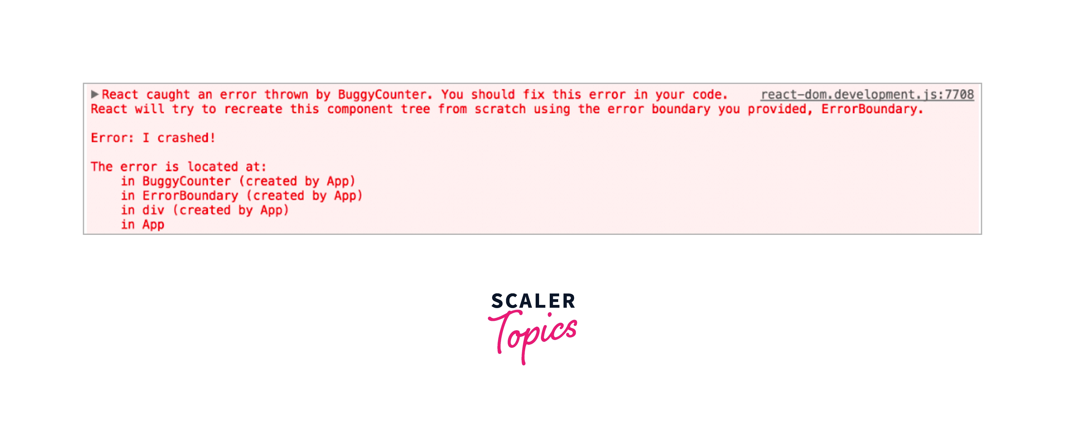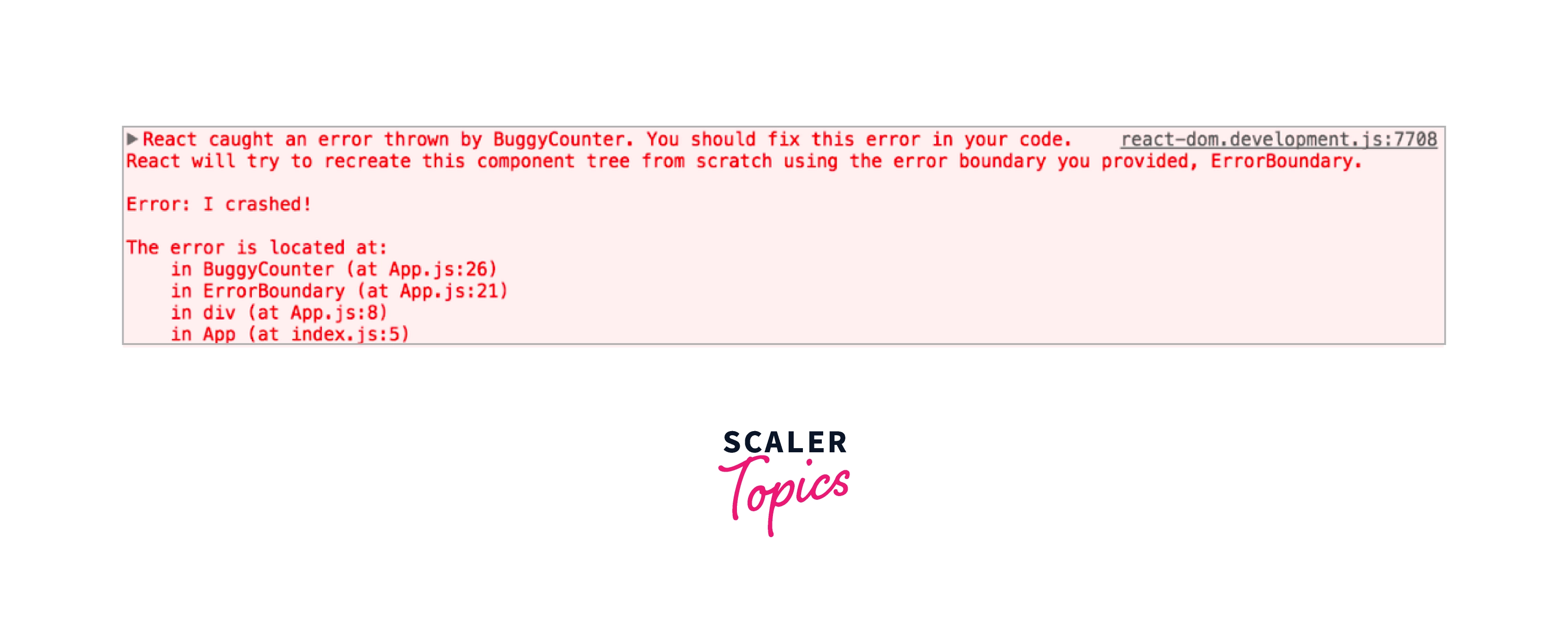 React 16 prints all the errors in the console even if the errors are not visible on the screen. In addition to printing, the error in the console React also provides component stack traces i.e you will be able to see exactly the component tree where the error occurred.