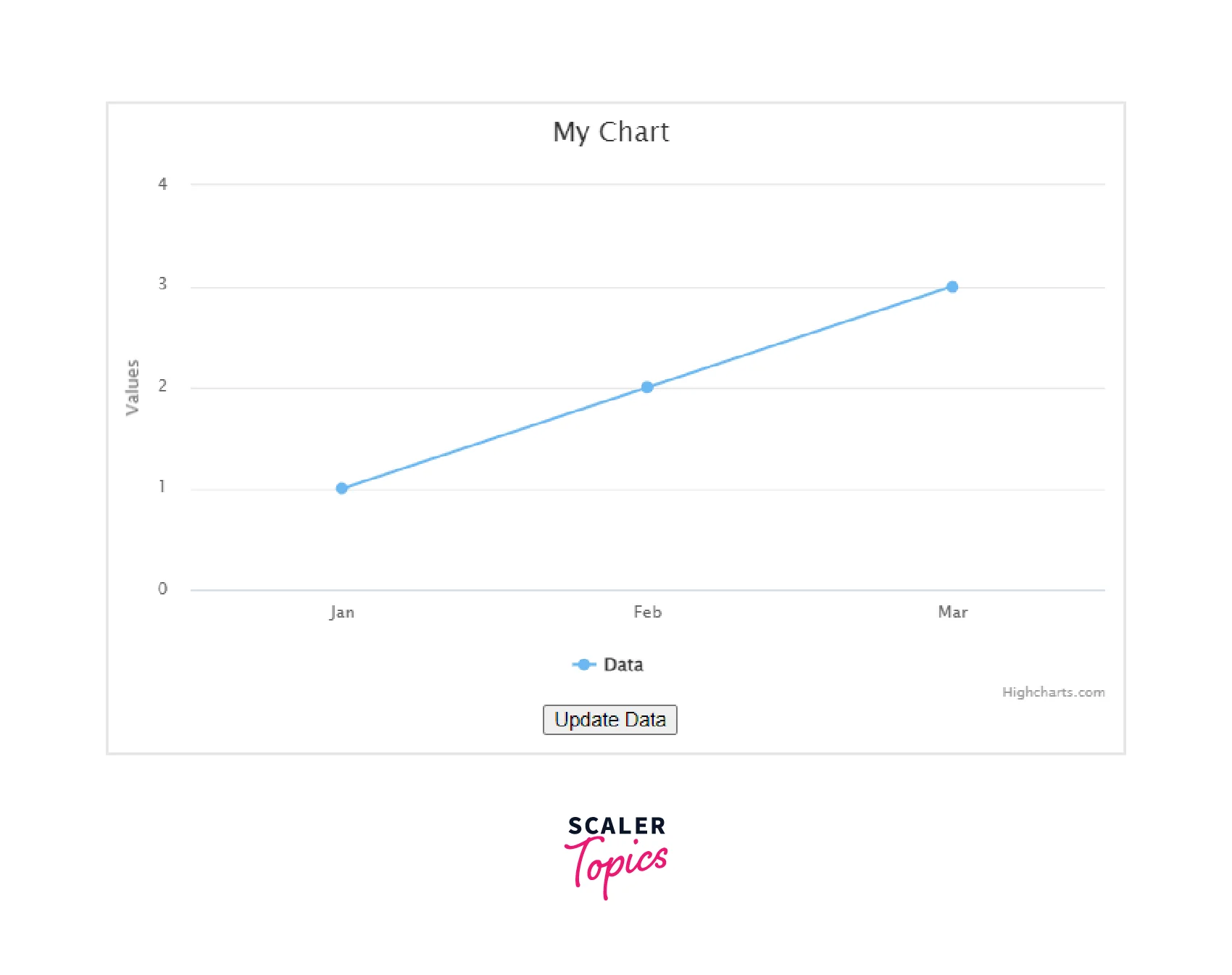the chart's data is stored in the component's state and the button is used to update the data when the user clicks on it. This will trigger a re-render of the component, and the chart will be updated with the new data.