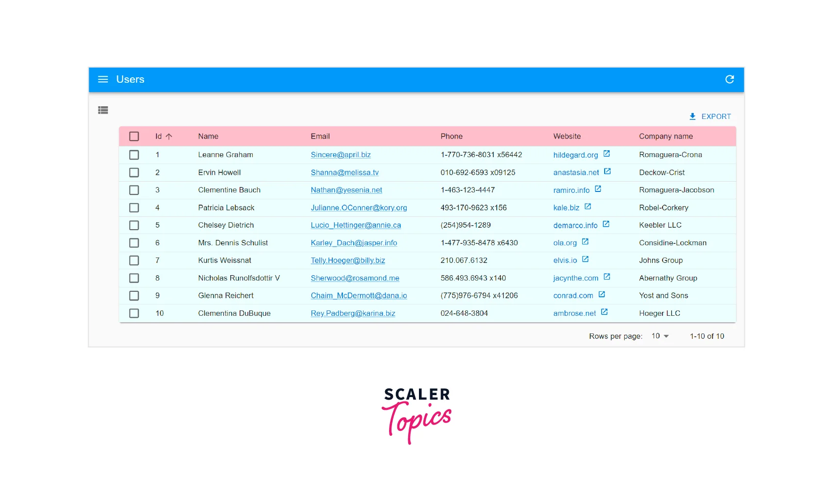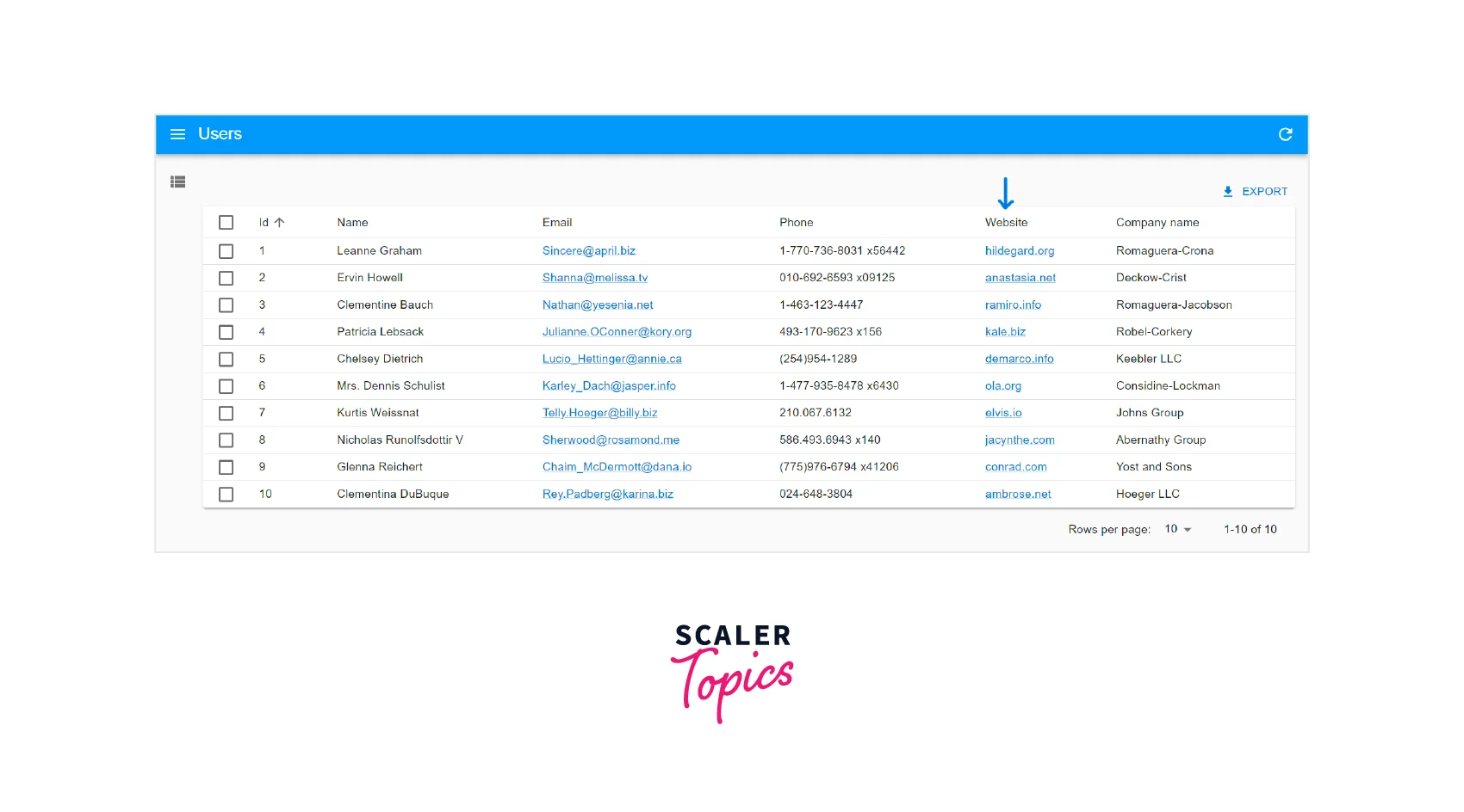 We will use this prop to style the Datagrid component and modify the link style of the website field.