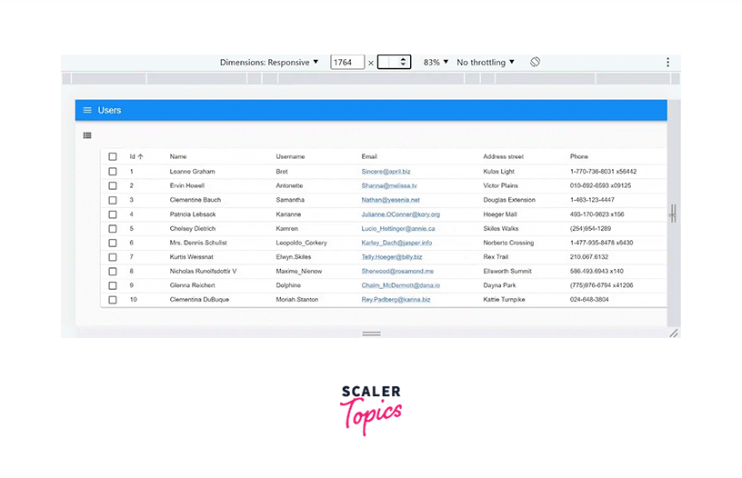 Our react-admin layout is responsive. The <SimpleList> component works well for smaller screen devices like mobile devices. On a desktop, the <SimpleList> component may consume a significant amount of space, resulting in a low information density, which is not ideal for displaying large amounts of data in a limited area. Therefore we will modify our UserList component and use the Datagrid component to suit the larger screens. We will use the useMediaQuery hook to achieve this.