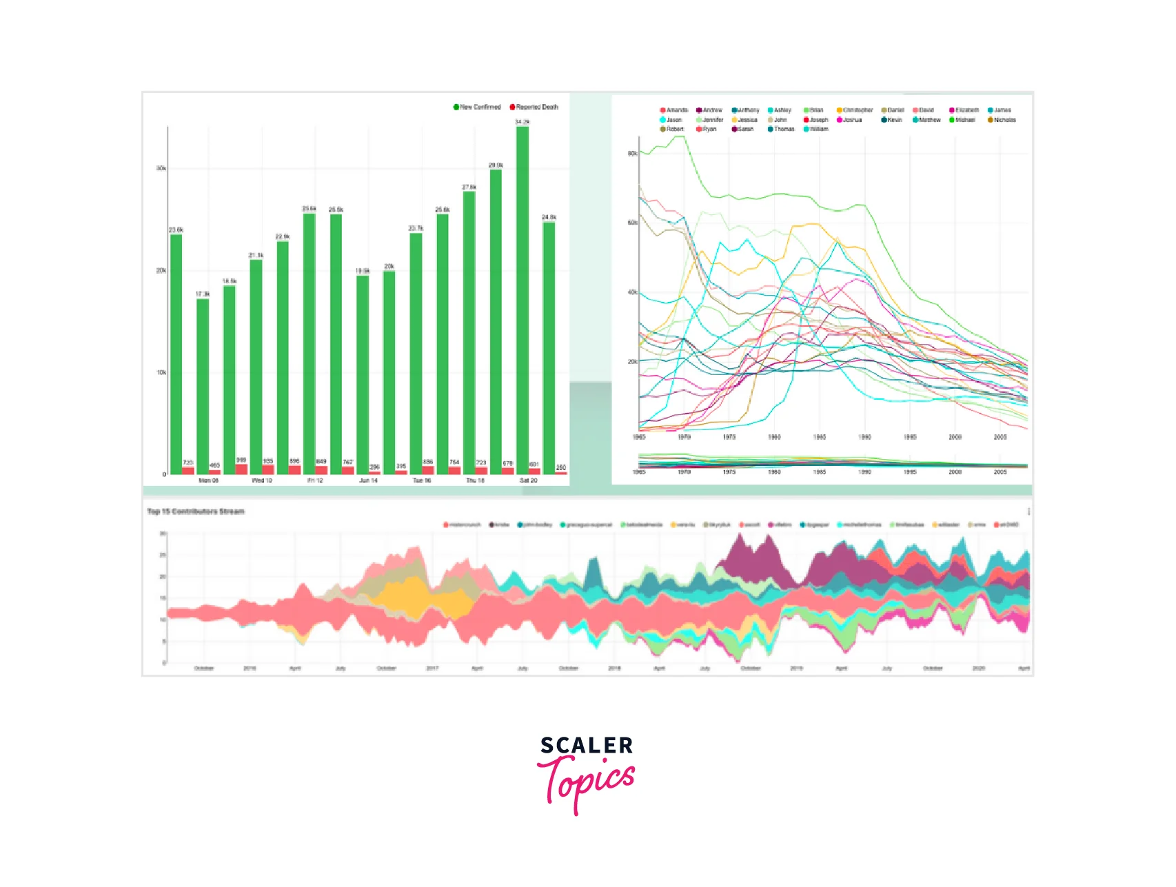 The react charting library, react timeseries charts are also created to visualize time series data. This library also provides interaction with graphs along with highlighting and indicators. We can also create chart overlays and multiple compositions on the X and Y axis.