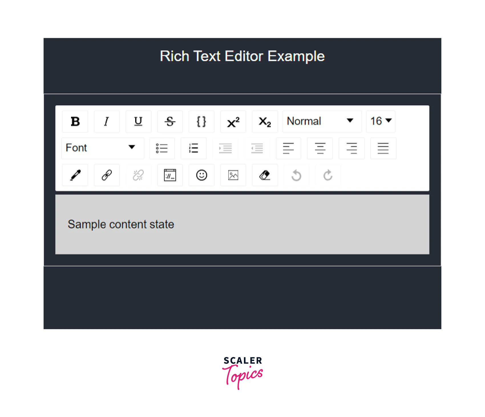 An uncontrolled or controlled component can both exist in the editor. EditorState, the editor's top-level state object, is used to create a controlled editor.