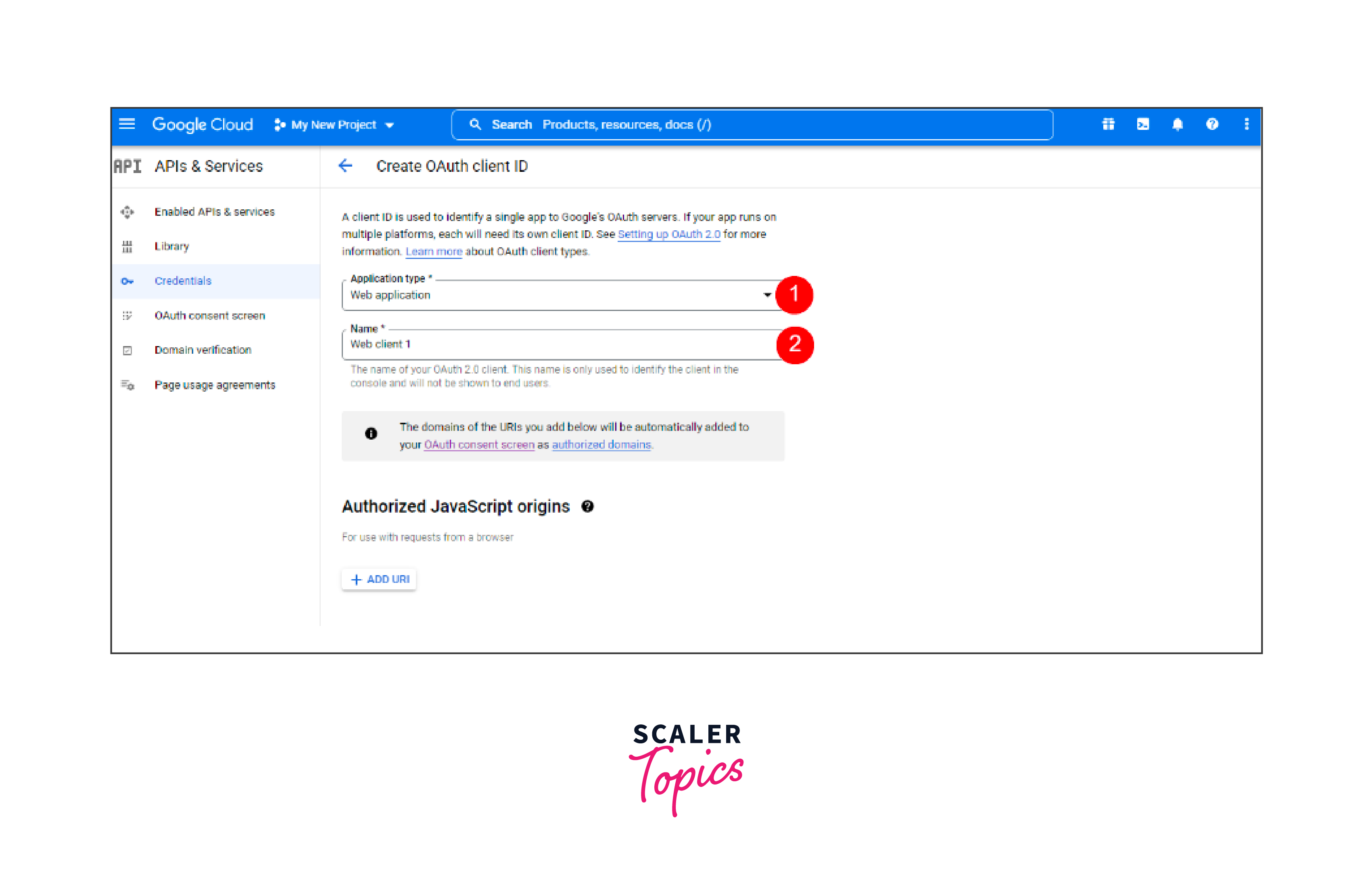 - Click Create Make sure you provide your domain and redirect URL. To identify the origination domain for which Google can provide authentication.