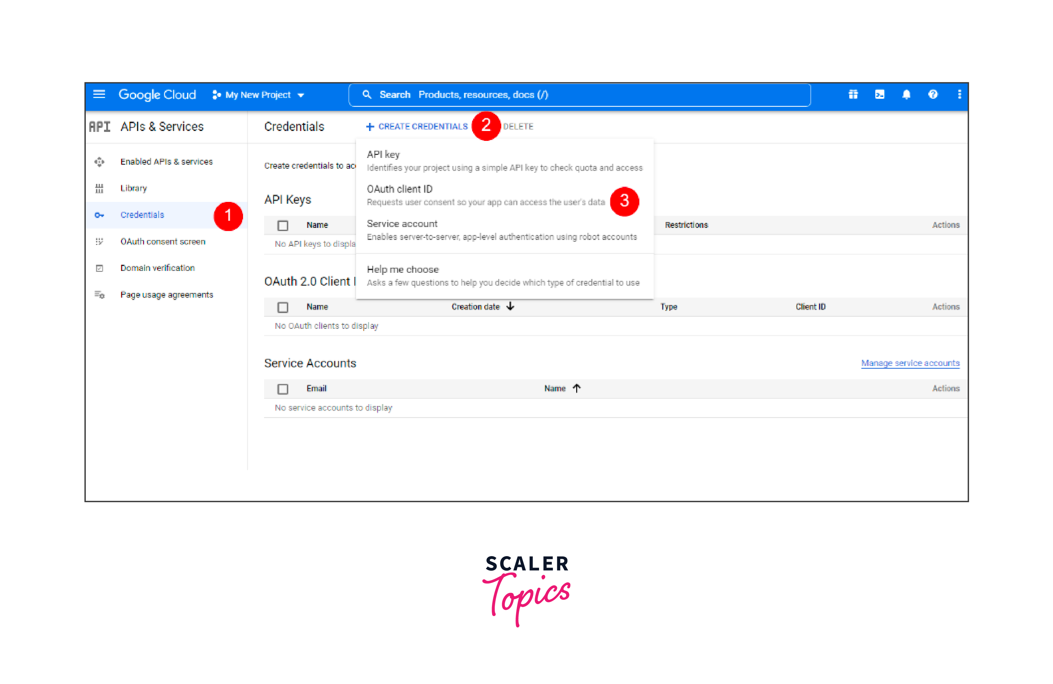 - Go to the Credentials page.(If this is your first time, create a project and follow these steps)
