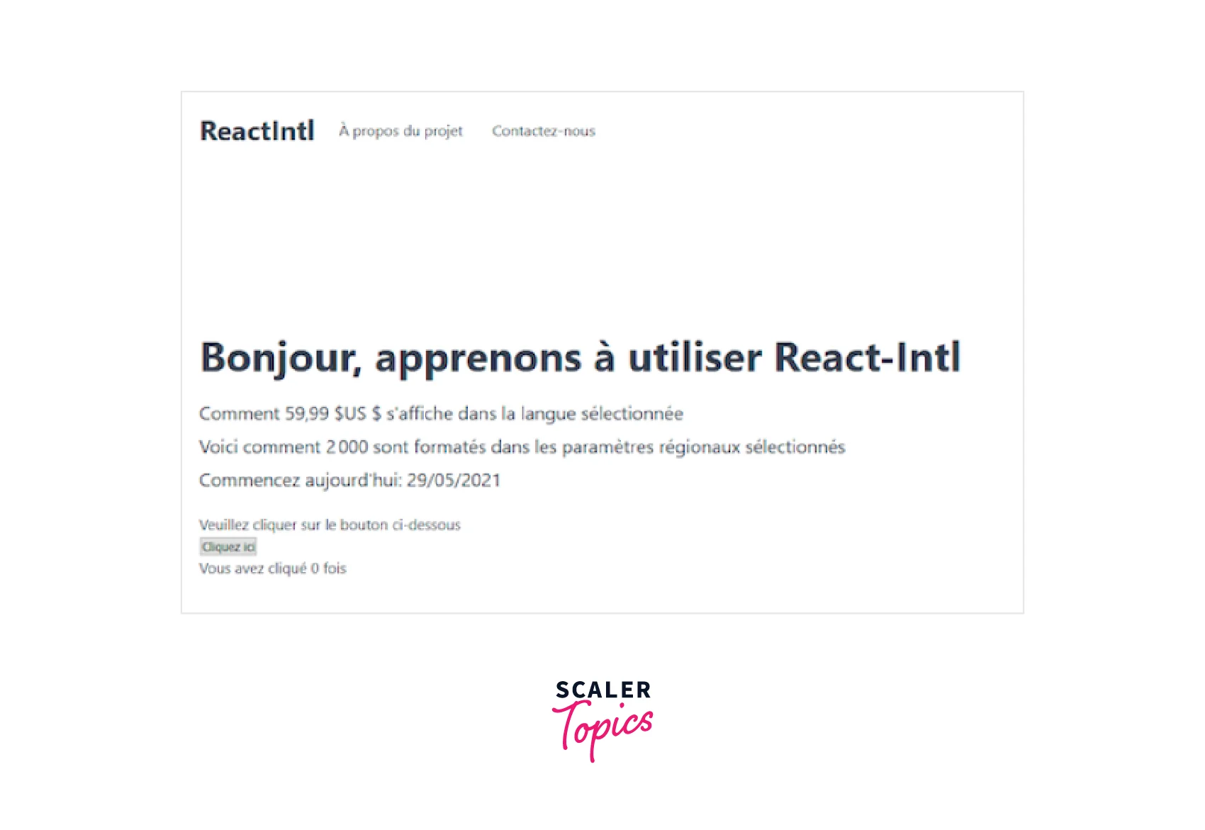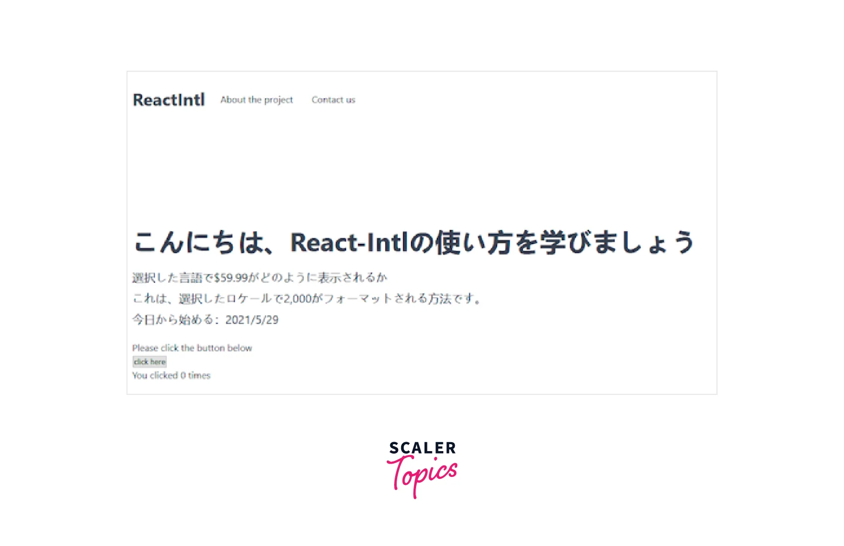 We will now use the hooks that are provided by the react intl library. Since we are using hooks then this method will work only in the Functional components.