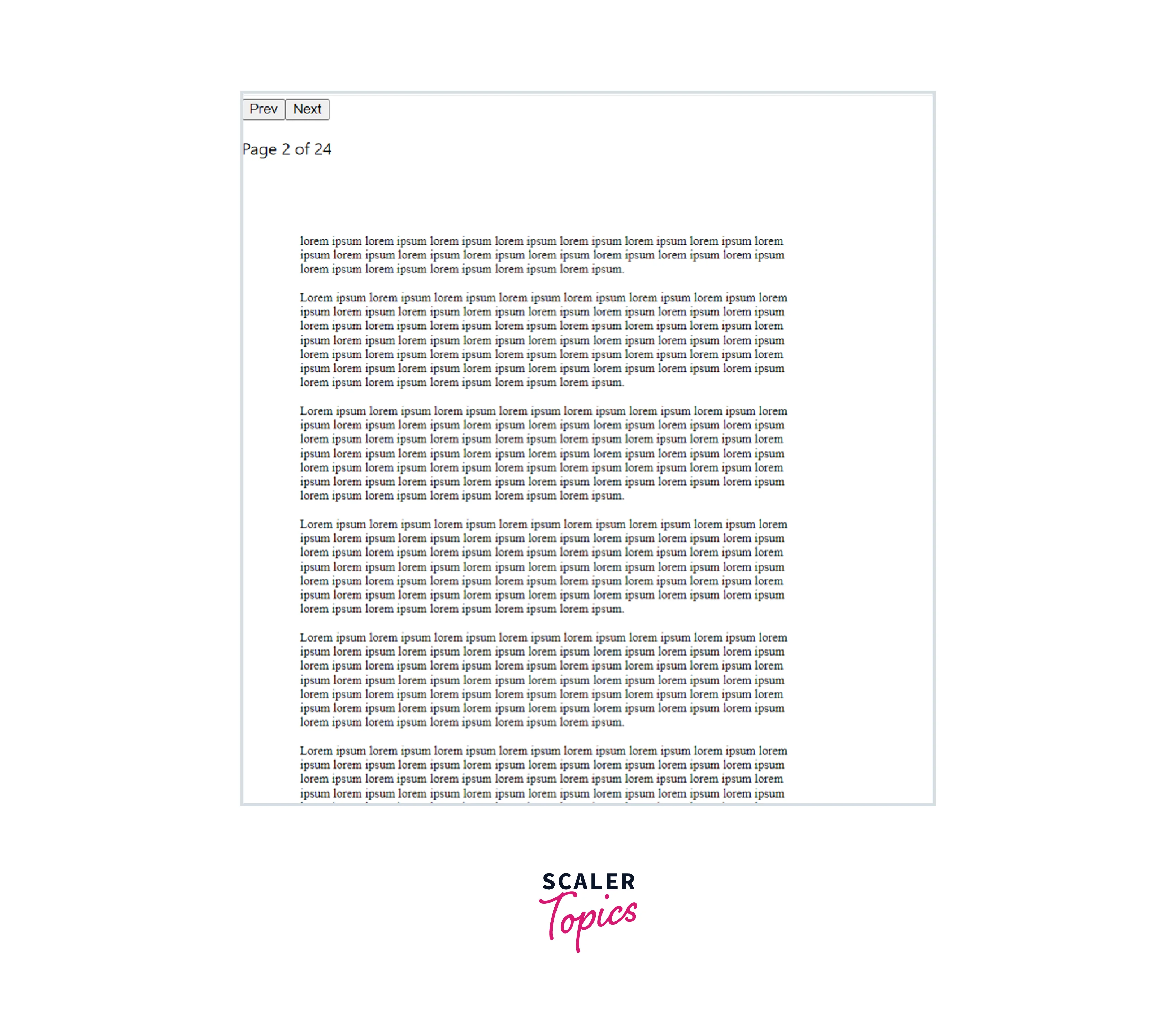 React-pdf lacks a user interface, which is one of its drawbacks. In this illustration, you rendered two page-navigation buttons and displayed the overall number of pages.