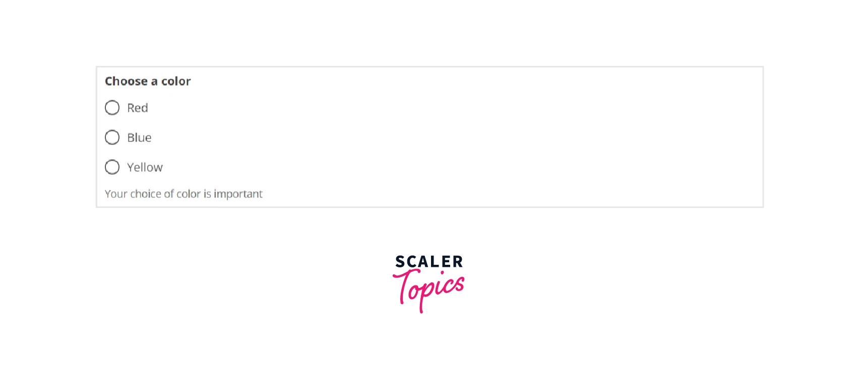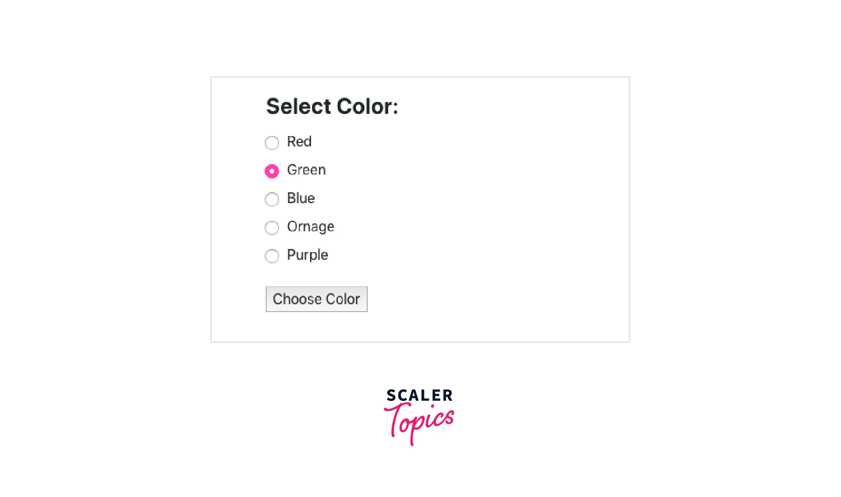 In other words, when a user selects any radio button from the predefined group. The onChange event handler is then used to update the state using the color variable.