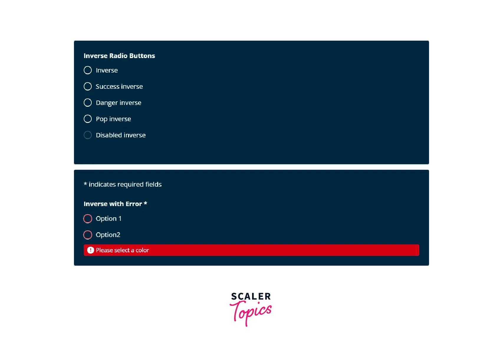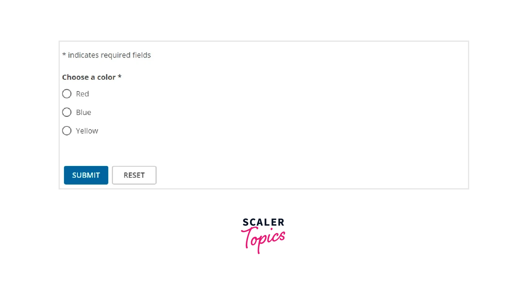 Each of the three radio buttons in our application has two states: selected and unselected. Indicating which radio button is expressly selected also indicates which should be unselected. A similar outcome may be obtained when creating radio buttons in HTML by grouping react radio buttons together using the name HTML attribute.