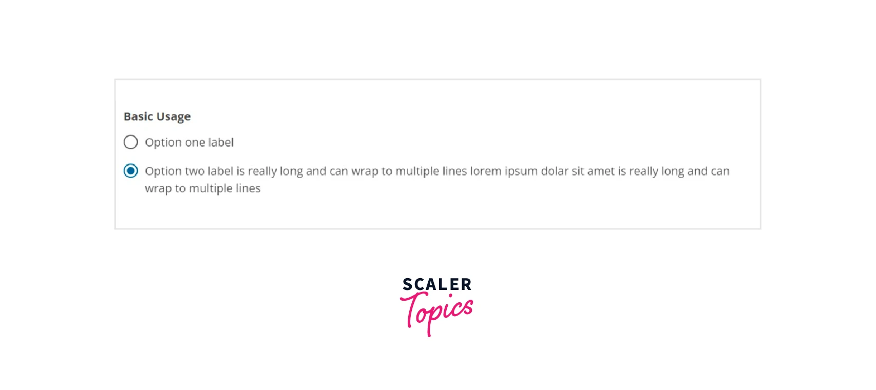 - The container for the set of options is the RadioGroup component. Each of the options themselves uses the Radio component.