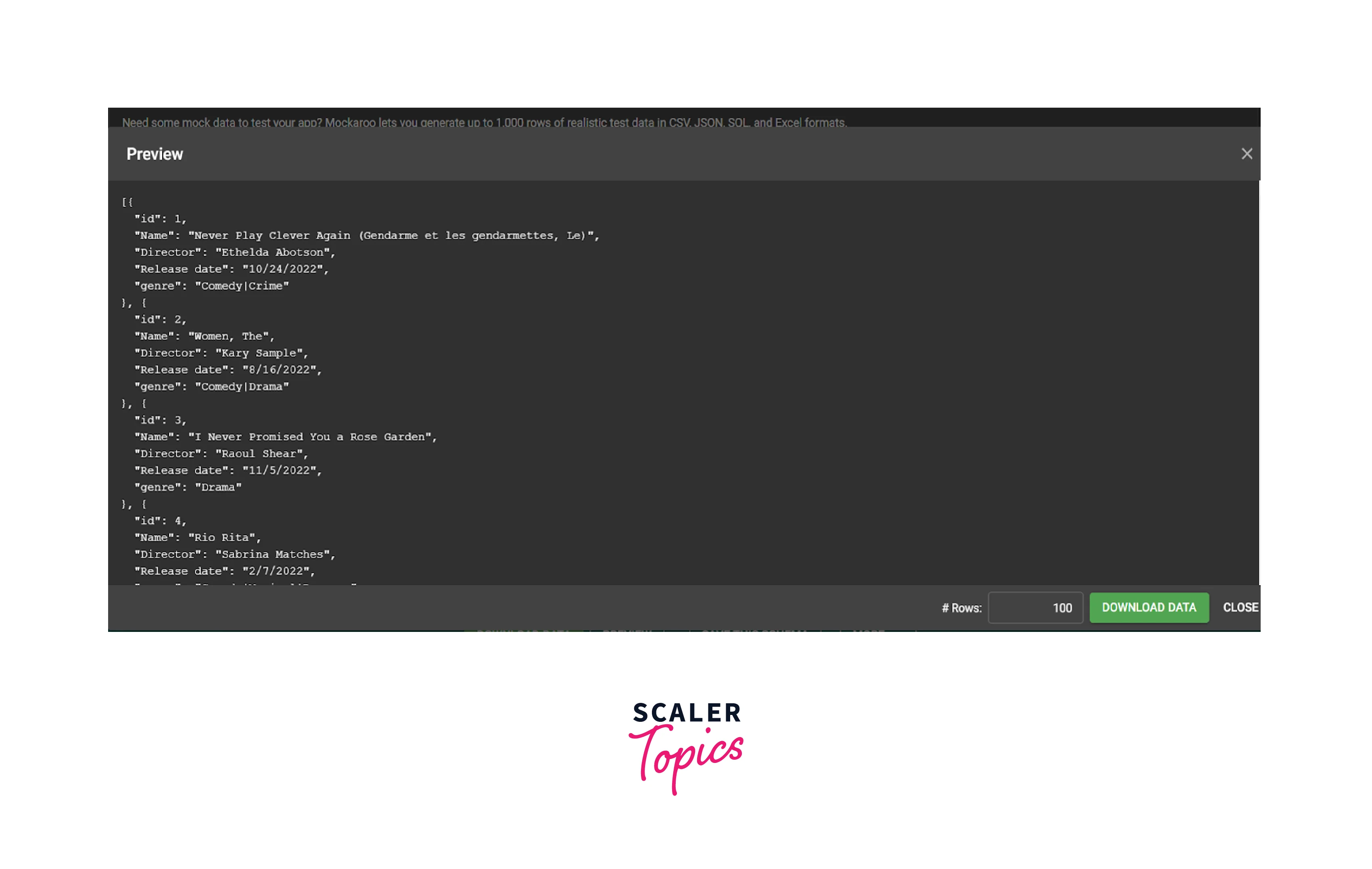 - You can generate some mock data on your own or just go to any online tool like Mockaroo.