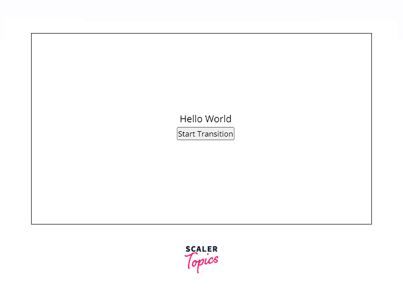 Initially, we have set the inProp to be true, which we can see in the output make the text Hello world blue, but as soon as we click on the Start Transition button, the transitionHandler() function gets called and inverts the value of the inProp state, which makes the component enter into exiting state, and after 1000ms it gets exit and thus the color change.