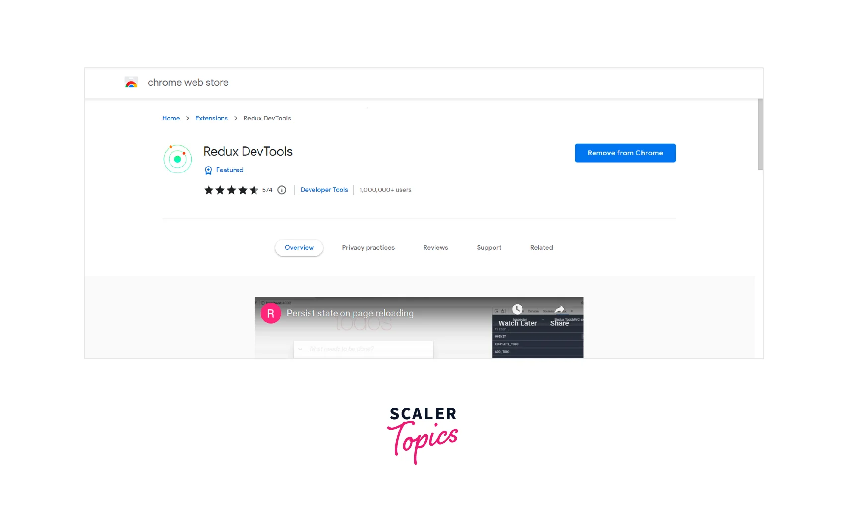 Download the redux devtools extension from the web store of your preferred browser, here is the link for Google Chrome, Mozilla Firefox, and Microsoft Edge, and then install it by simply adding it to your browser.