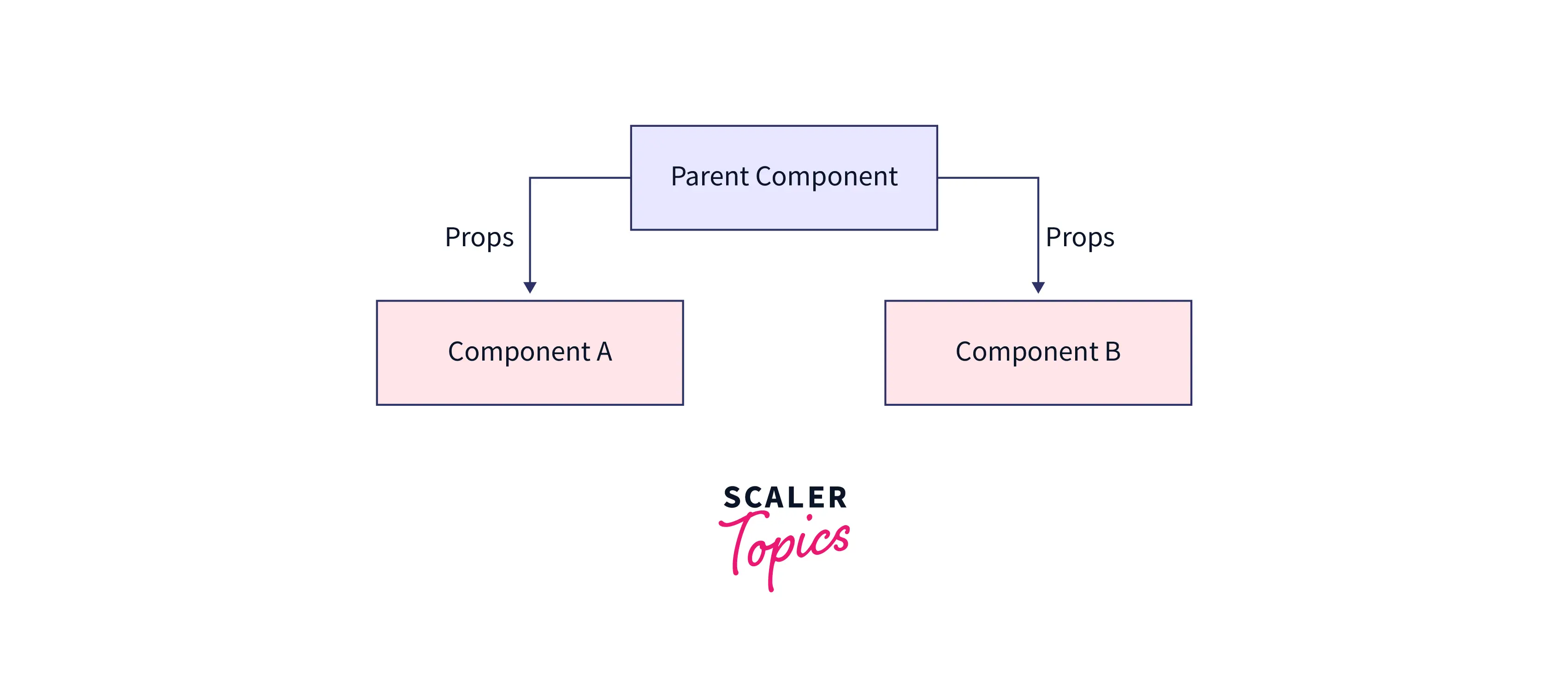 A good illustration of React's unidirectional data flow is this. Through read-only characteristics known as "props," the parent component in this illustration gives the child components a snapshot of its current state. The data given down from the "Parent Component" is shared by "Component A" and "Component B." The next instance demonstrates where the problems start.