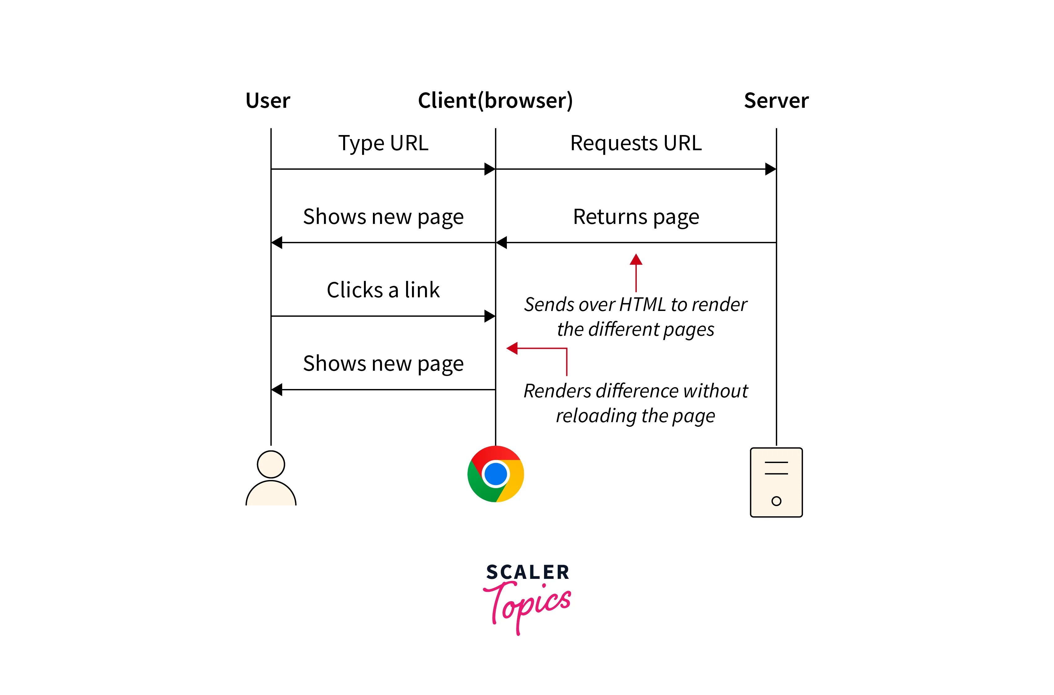 - It Involves the server handling navigation, resulting in complete page reloads and is suitable for simpler applications with quicker initial load times.