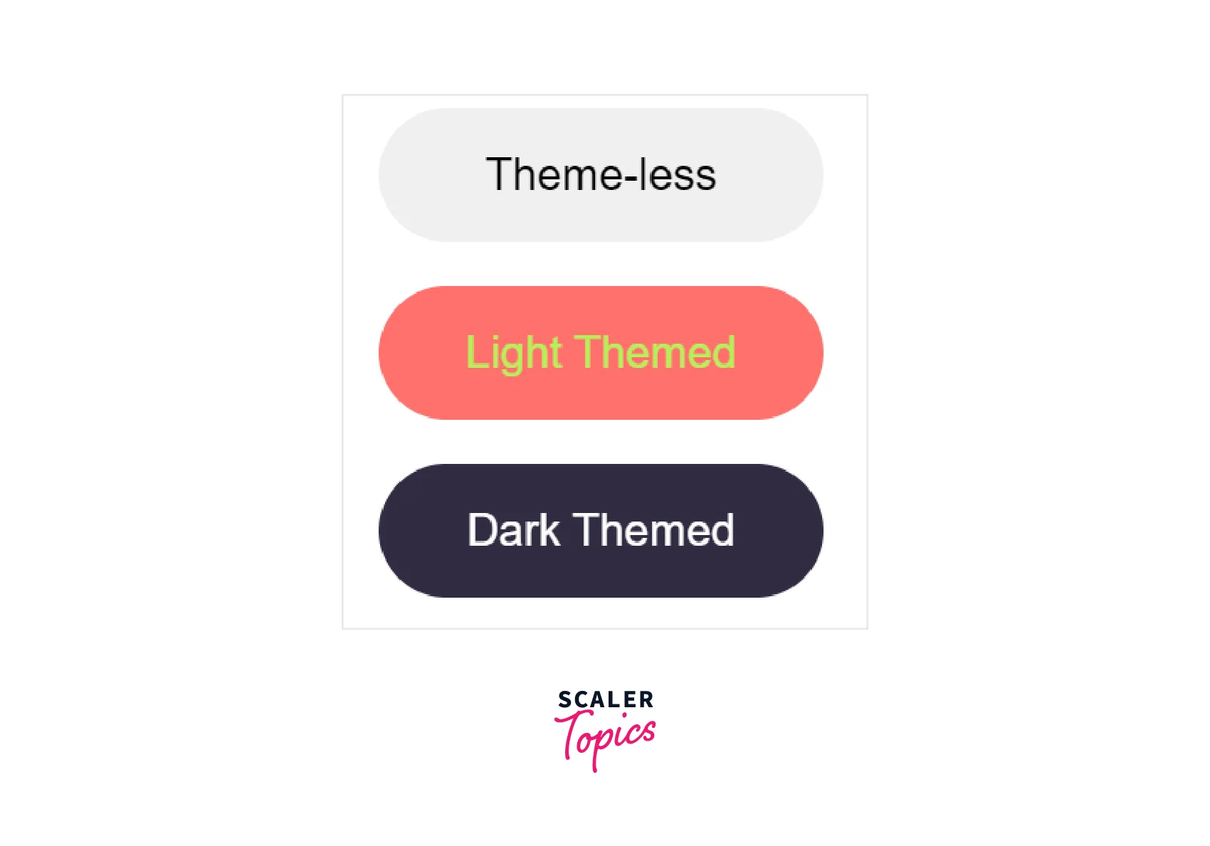 - Different themes are passed to the consecutive ThemeProvider components and the colours of the button also differ respectively.