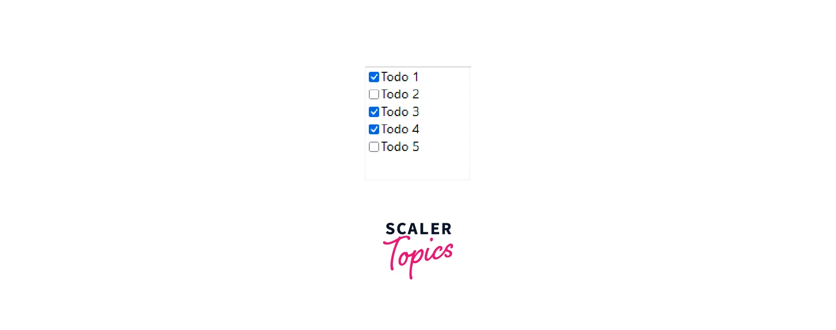 As we can observe in the output below, we have a list of 5 items wherein we can implement check/uncheck functionality to keep a track of pending and completed tasks.