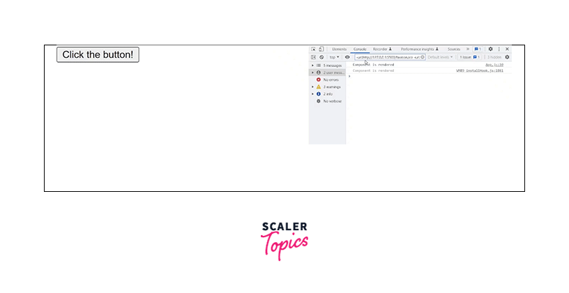 These changes call the render method to incorporate them and update the application. This triggers the re-rendering of a component each time the state updates. On the other hand, by using a useRef, our component will render only once.