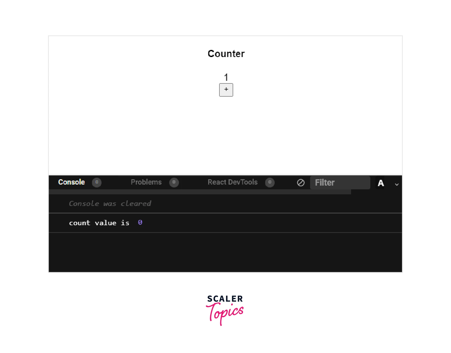 The count variable on the page shows that its value is 1 but on the console, it has been printed that the count value is 0. So why is this happening? The reason is that the state change operations are not synchronous. The console.log() statement in the code will not wait for the setCount() statement and they both get executed asynchronously.