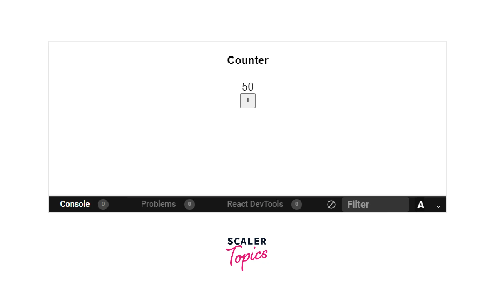 After clicking the button, the value for the count variable should have become 50. But the final output shows that the count variable has just incremented by '1' and not '50'.