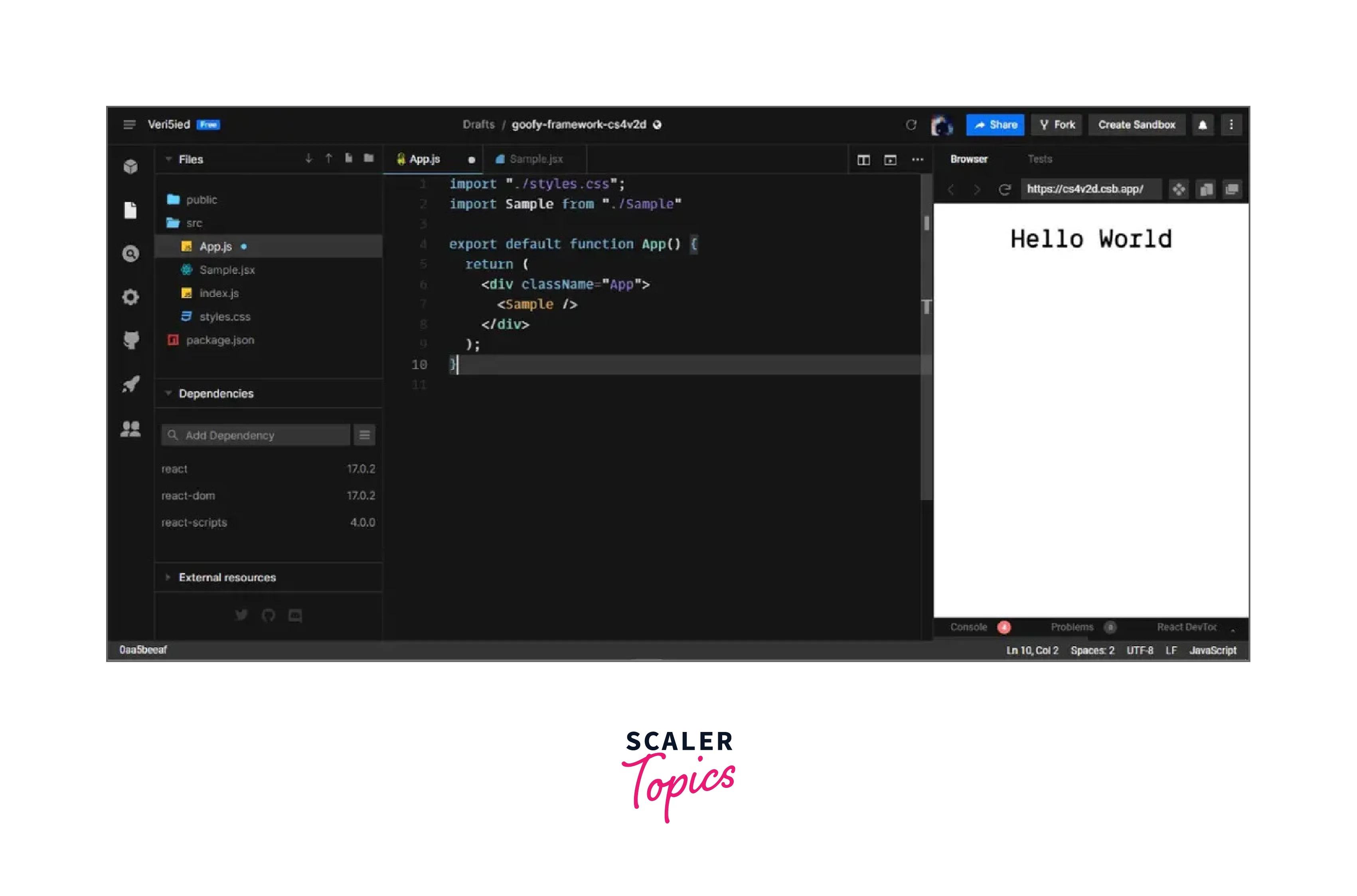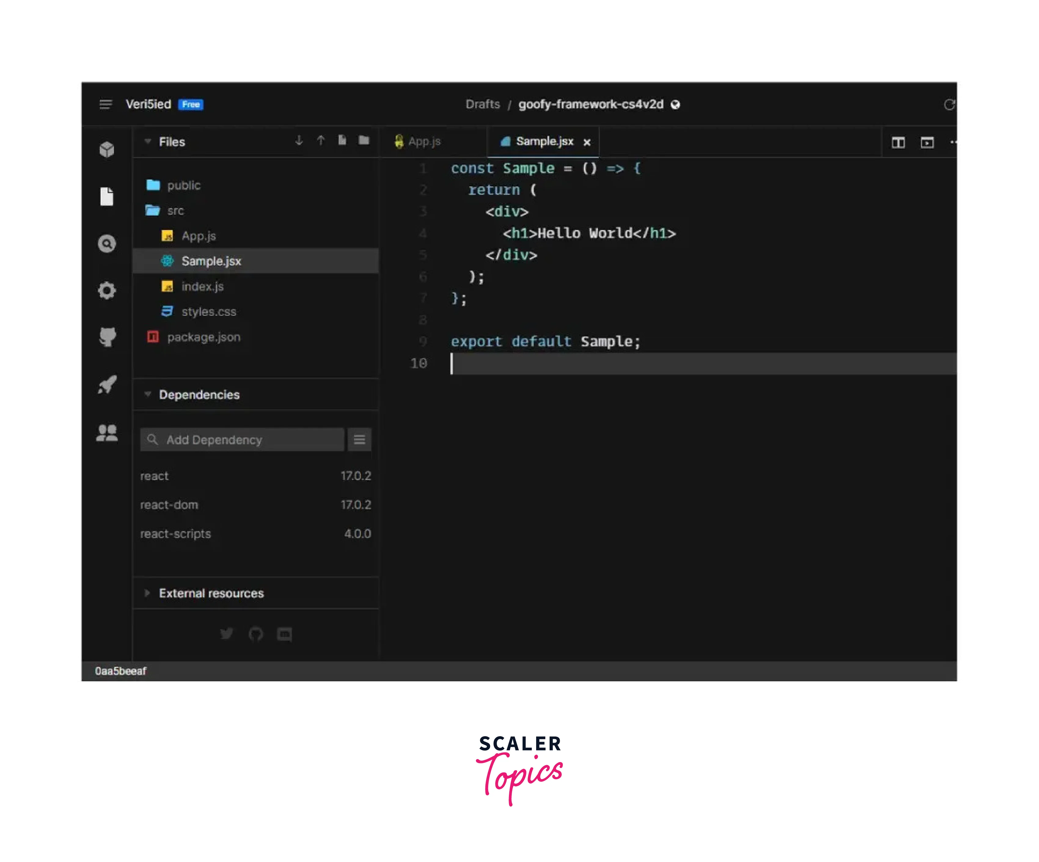 After React has been installed, launch the app in your preferred text editor and make a new file called Sample.jsx.