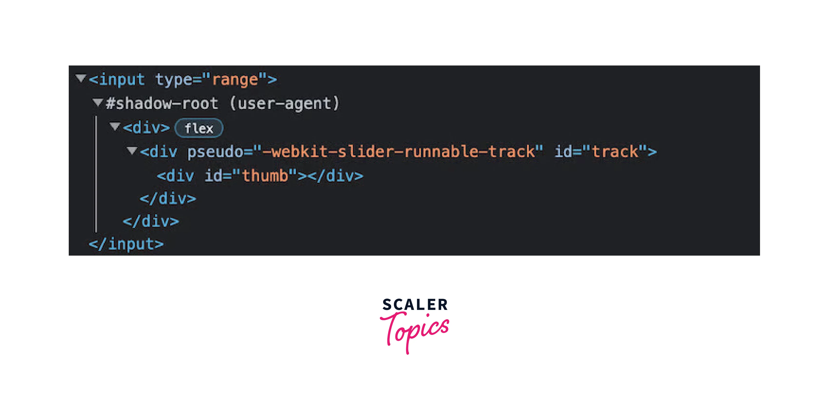 When we use the developer tools in the browser to investigate the element, all we will see is a straightforward input element. The additional components and styles that make up the input slider are, however, encapsulated and concealed internally by browsers.