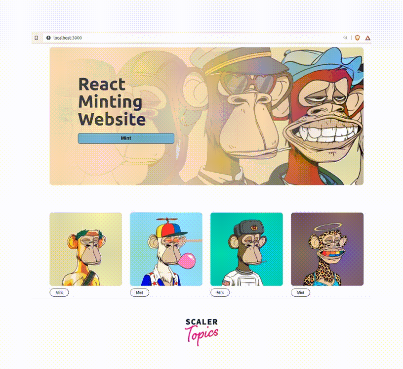As illustrated below, we will build the user interface for the minting website: Demo Link: